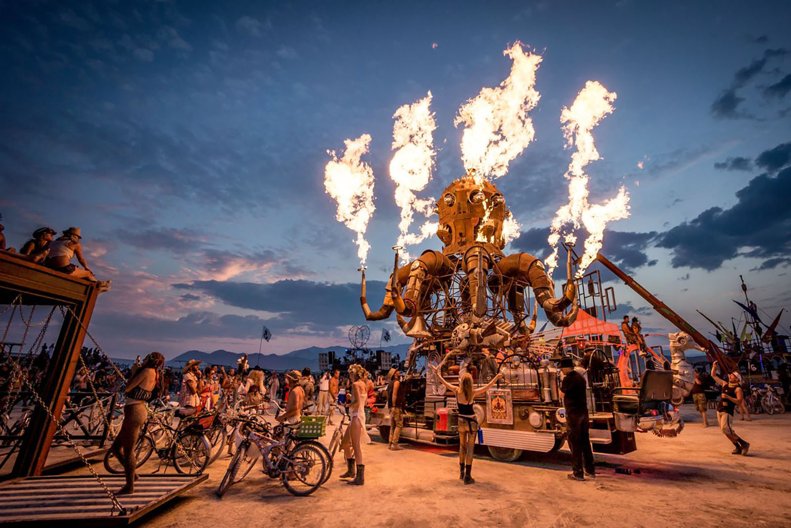 Burning Man is a world-renowned annual festival held in the Black Rock Desert, Nevada, where thousands of people from across the globe come together to build the temporary city of Black Rock City. It’s known for its monumental art installations, music, performances, and the symbolic burning of the "Burning Man" figure. The core values of the festival are radical self-expression, self-reliance, and environmental respect.