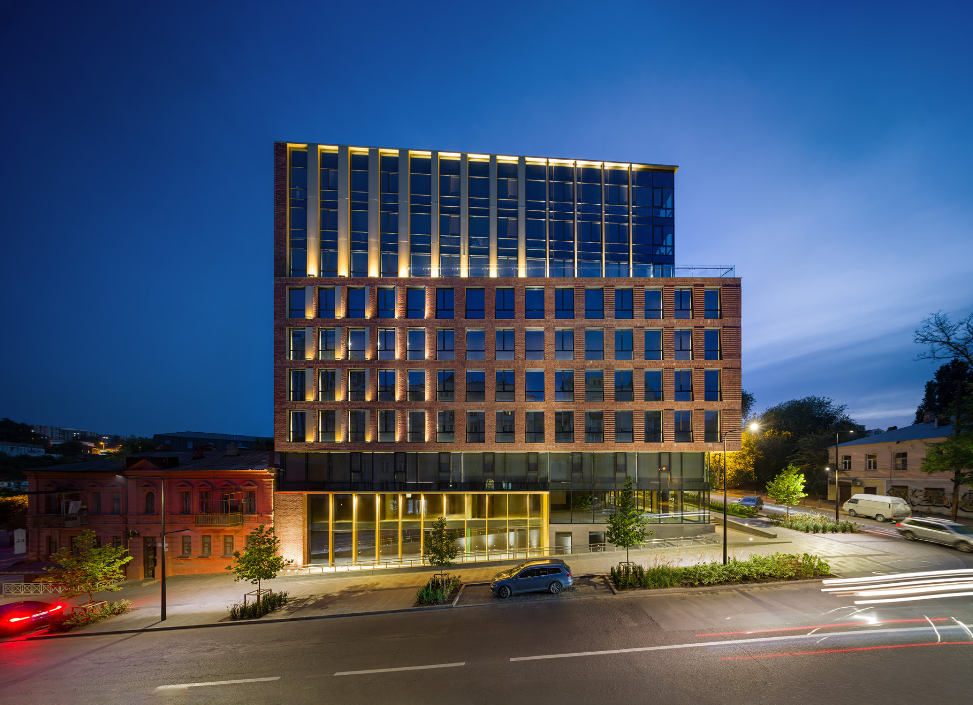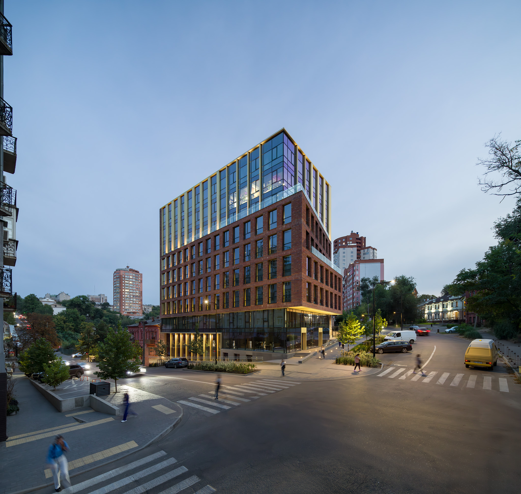 Corner is a modern office complex in the central part of Dnipro. The building is distinguished by its restrained architecture, convenient transport accessibility, and developed infrastructure in the surrounding area.