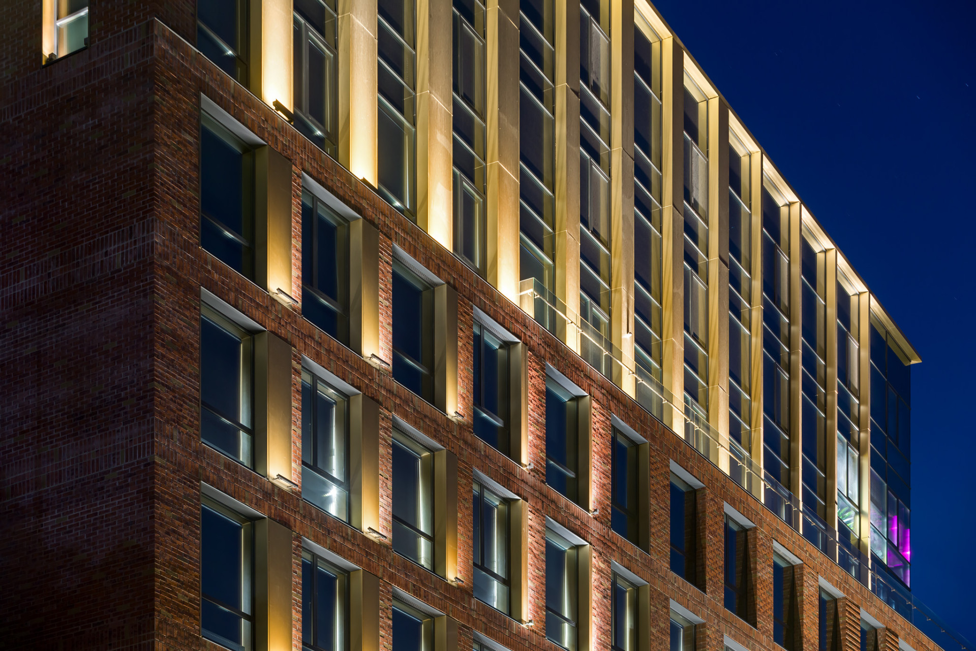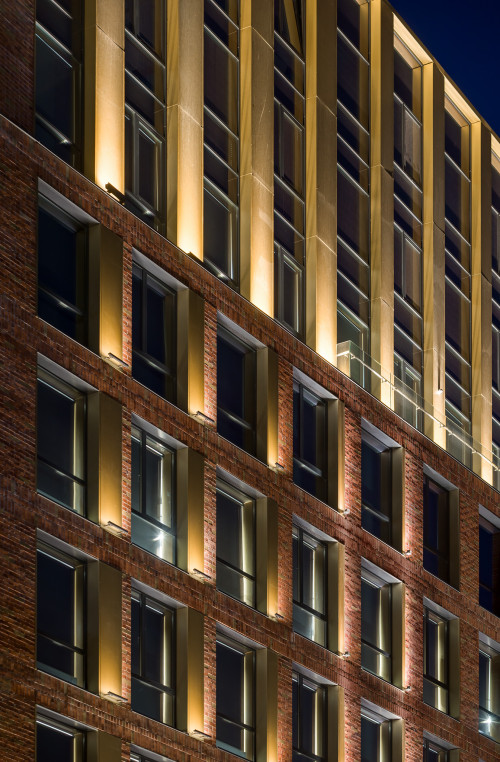 For this project, we emphasized the character of the façade by playing with vertical lines and soft accents on the windows. We used a combination of directional light and hidden linear elements to make the façade look light yet majestic in the evening lighting.