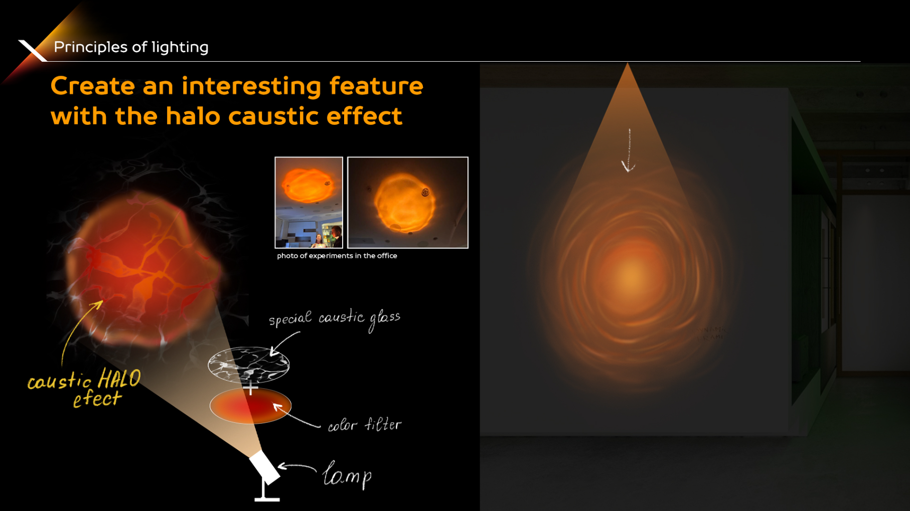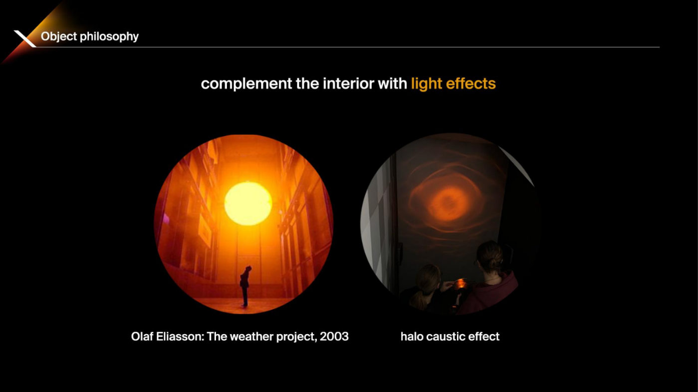 For this project, we developed custom luminaires, including a halo effect luminaire whose pattern can be adjusted manually, creating a unique pattern on the surface that resembles the sun above the horizon. All the lighting is linked to a single control system and can be configured using our proprietary administrative app.