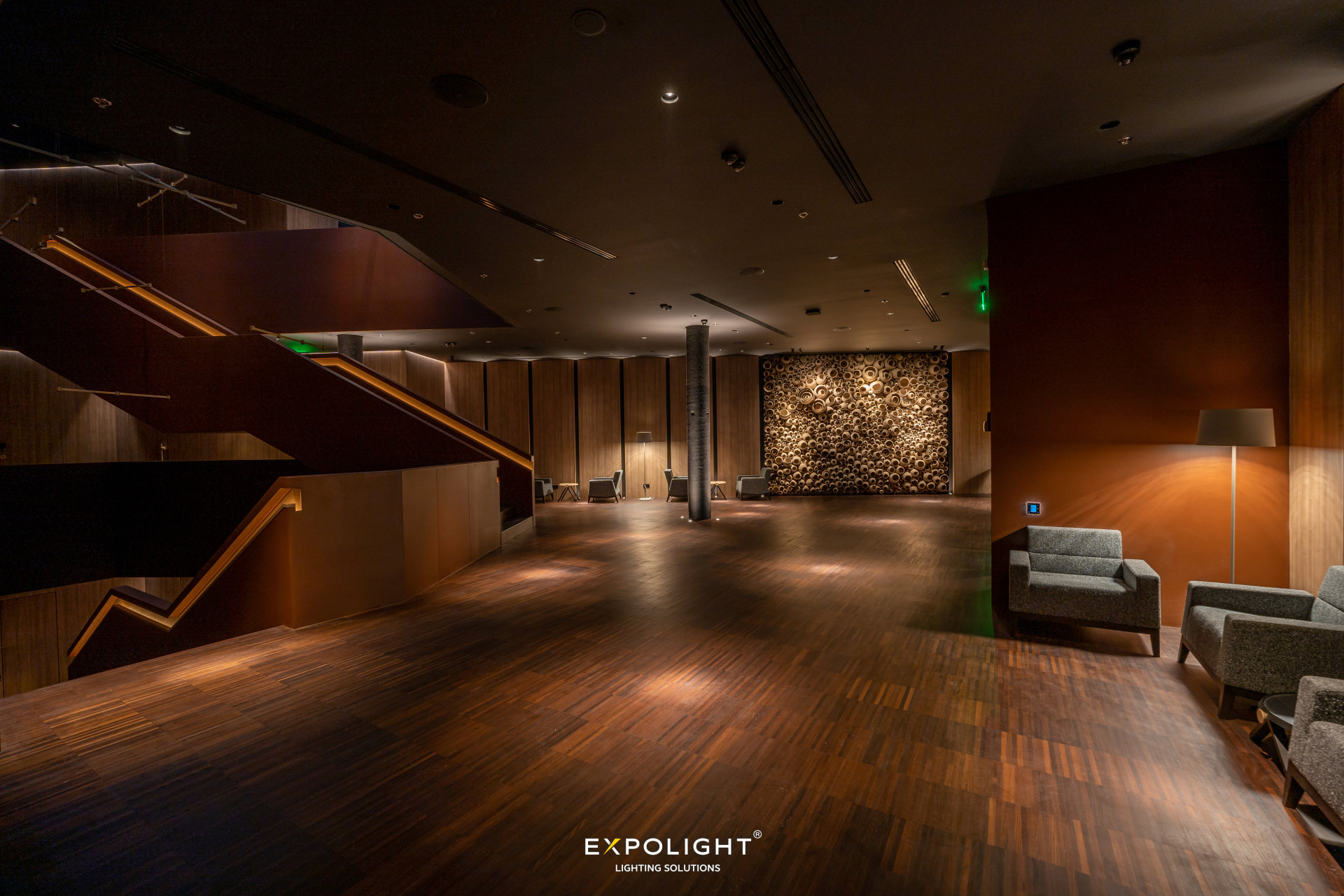 In this project, we have created cozy lighting that is adjustable and customizable using our Expolight Cloud Control System. The system allows you to automatically change lighting modes depending on the time of day. This means that the lighting adapts to the natural light and creates an appropriate atmosphere during the day, providing comfort and a pleasant visual perception of the space.