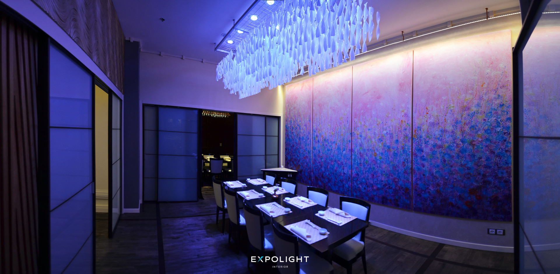 Here in the interior, the feeling of a clean, bright space is achieved by combining Japanese and European styles. All functional lighting in this project was developed by Expolight production.