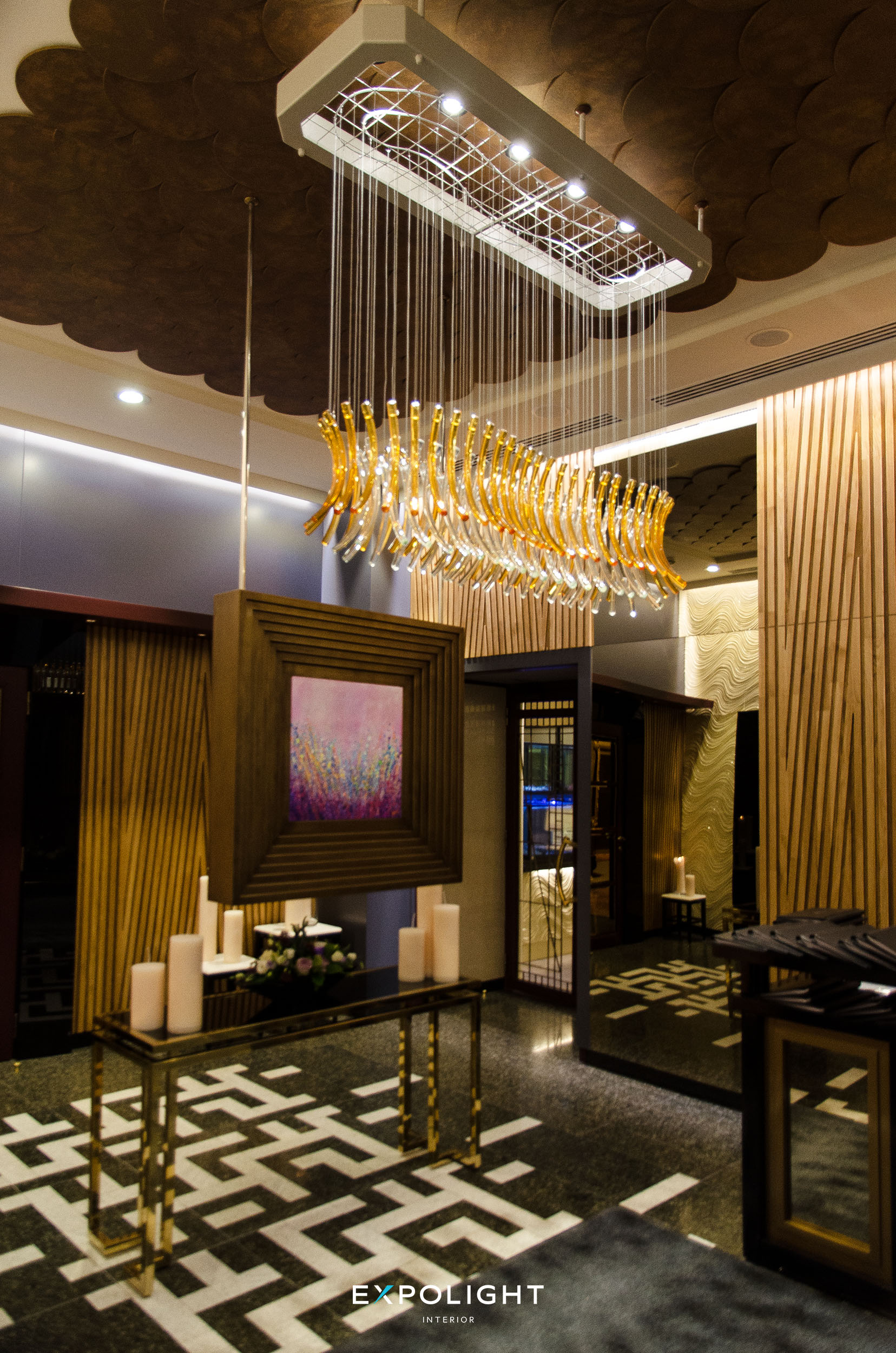 In the interior, the designers used many unusual textures, so, in revealing them, we worked a lot with directional light.