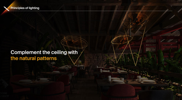 Each lighting element was designed individually to emphasize the interior features and create the right mood for any event. We manufacture all the equipment in Ukraine according to the project concept.