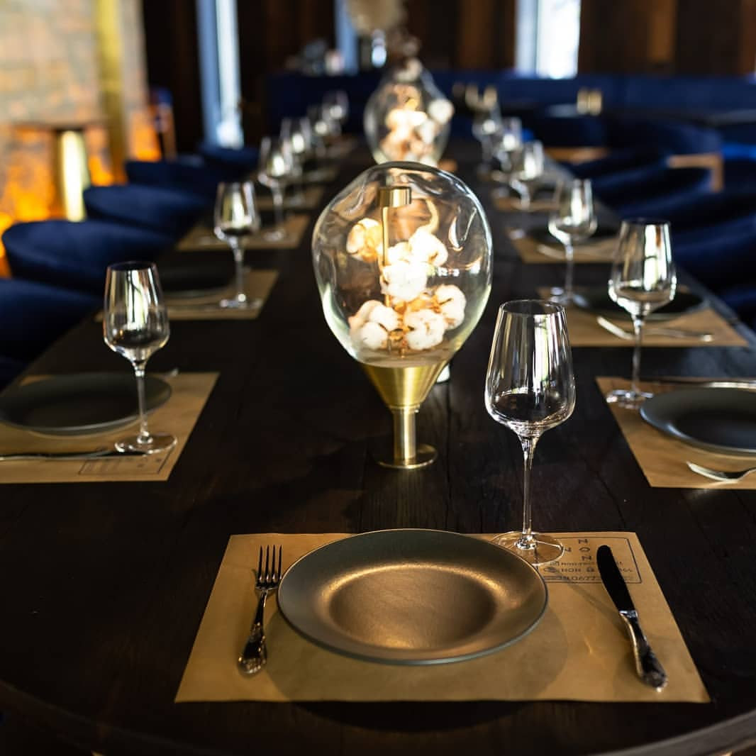 We made the shape of the glass domes for cotton irrational and irregular, combining it with real cotton branches. The light sources in each lamp are arranged in such a way that both the cotton inside and the space outside the lamp - tables and the common room - are illuminated. For a long time, we were looking for design options that would allow us to gracefully and invisibly integrate two light sources into such a transparent and light form.
