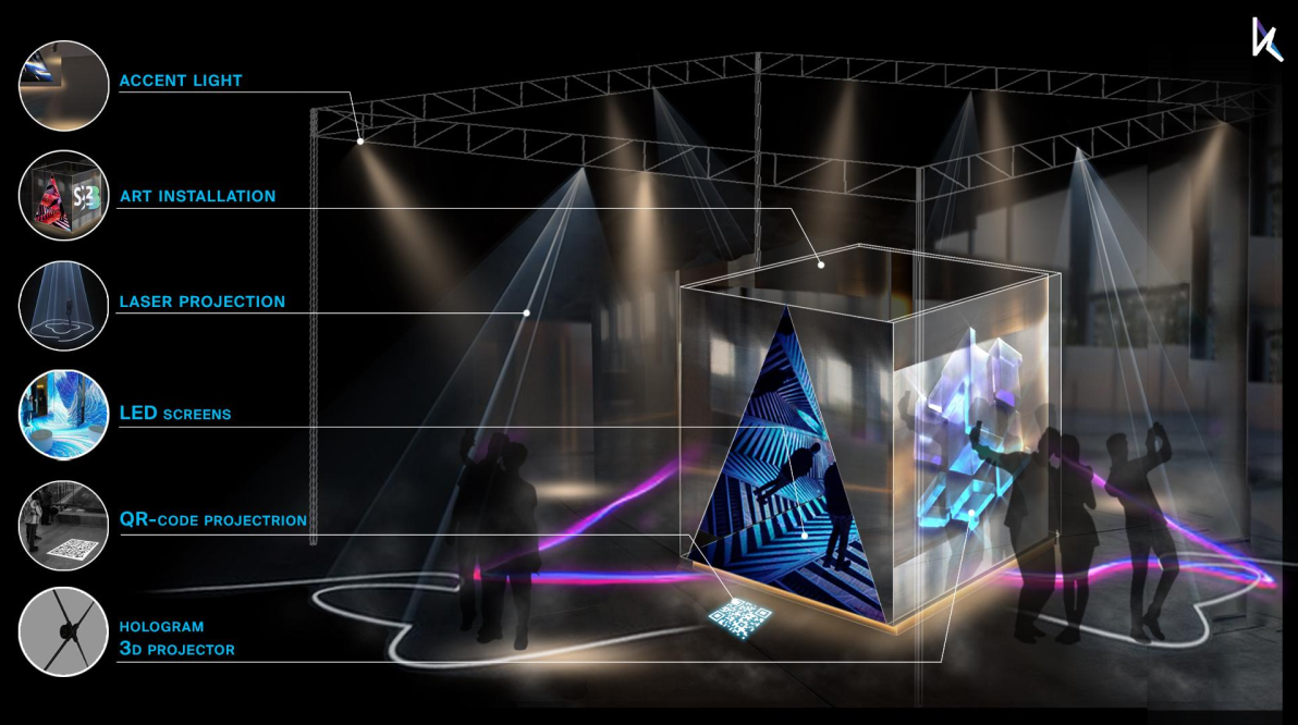 For this project, we created a super-innovative stand that offers an immersive experience through a combination of interactive technology and media art.