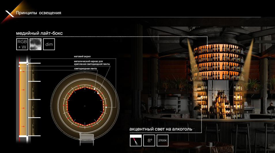 The restaurant has three floors, and we worked on each of them together with a talented team of Boom Project architects led by Yaroslav Kovalchuk