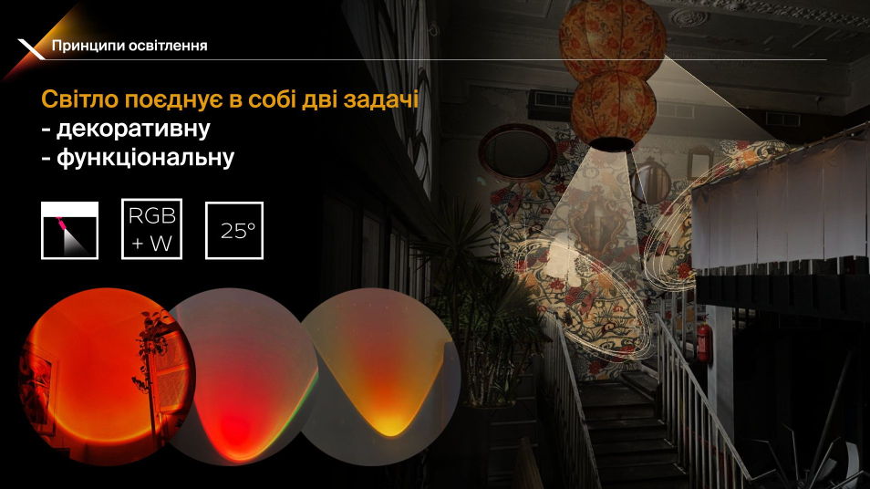 We made the light with all lighting scenarios - daytime, evening, late evening. All the lighting elements are connected into a single whole using our Expolight Cloud Control System cloud server, so we can control the lighting at the facility from different parts of the world, either from a laptop or a smartphone.