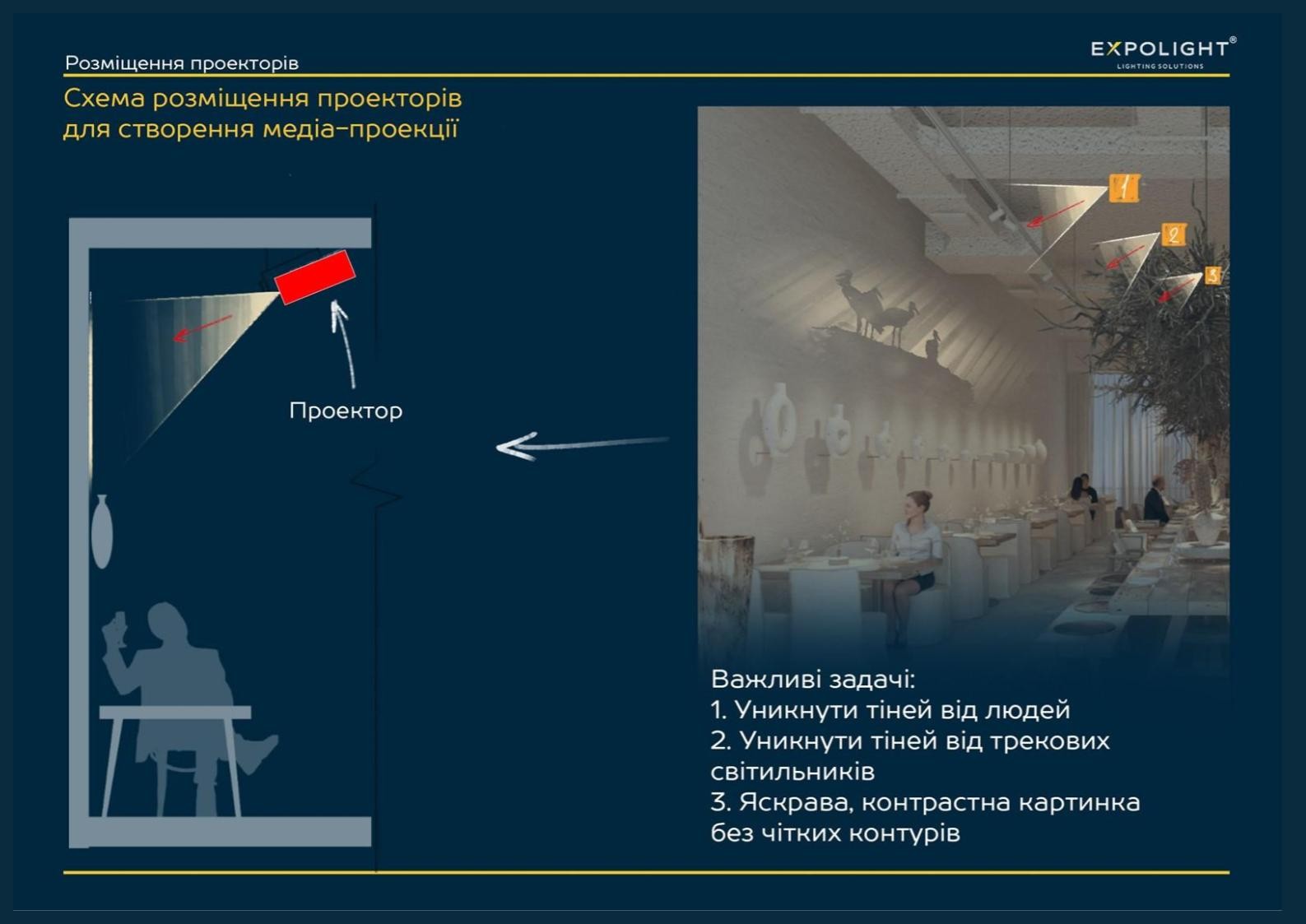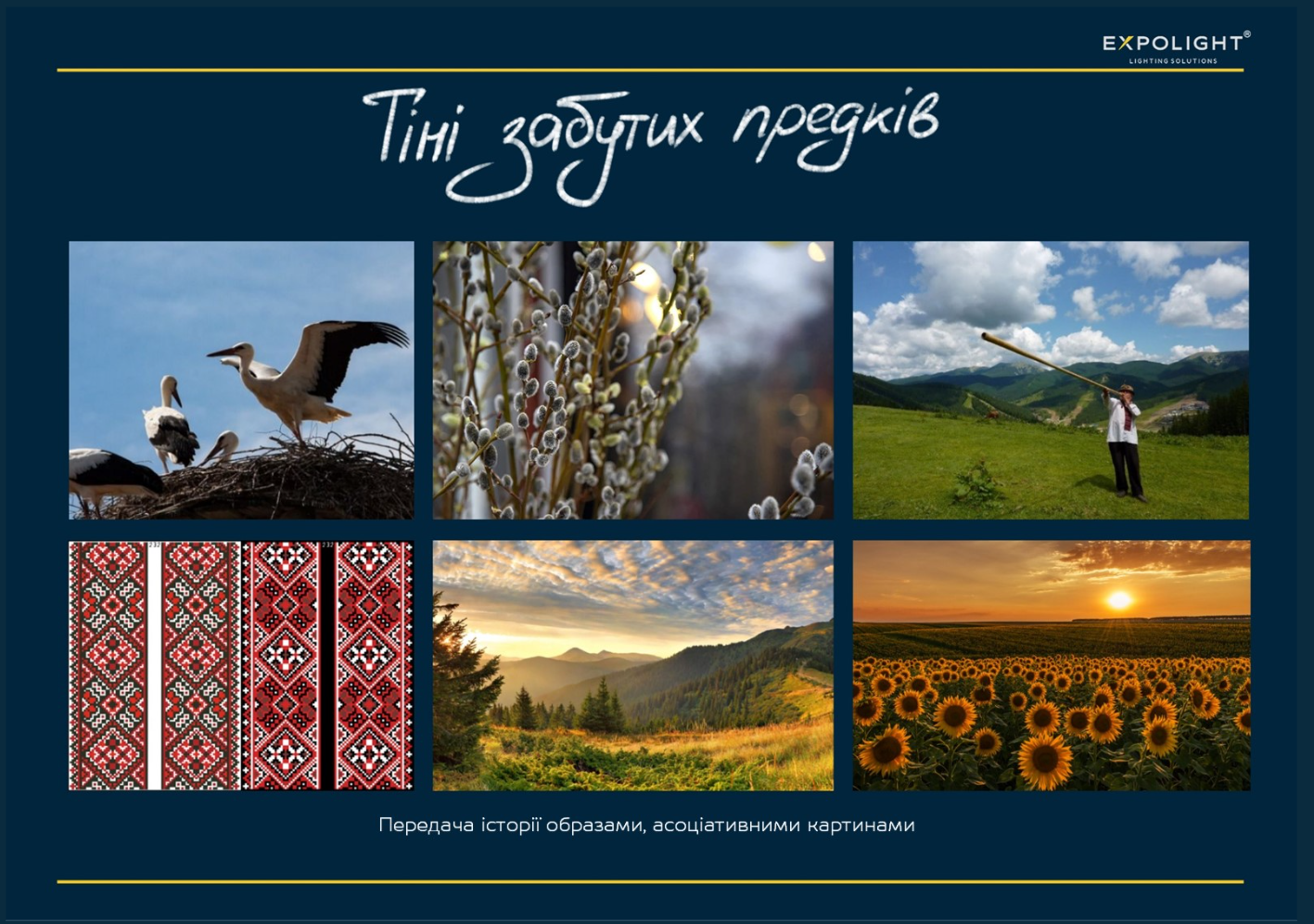 We use media projections on the wall to convey the basic values and ethnic codes of the Ukrainian people. For example, storks grow up, fly away for the winter, but then return home anyway. This symbolizes the cyclical nature of life, when a person leaves his or her homeland but does not forget about the land, reaches out to it, and eventually returns to it.