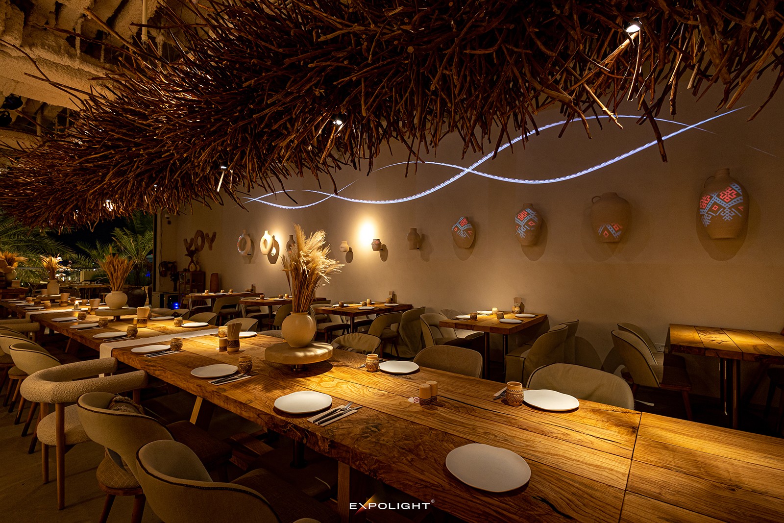 We carefully worked out the percentages of the ratio of brightness, intensity, and accentuation of light for day and night lighting. We tied all lighting elements into a single control system that allows changing scenarios, providing a comfortable, light atmosphere corresponding to human biorhythms. Scenario changes occur automatically on a schedule, with a smooth transition from morning mode to daytime, evening, and late night.