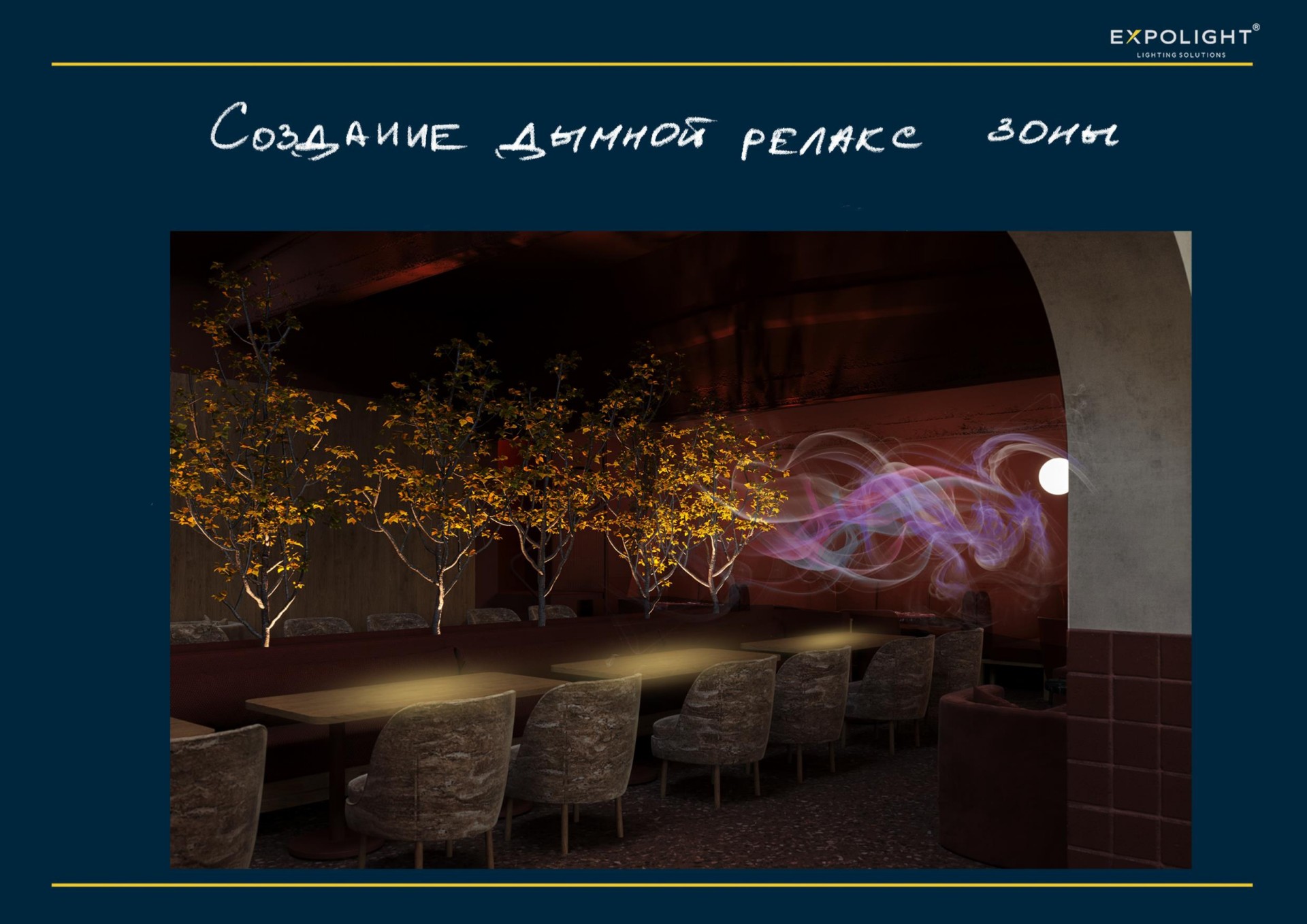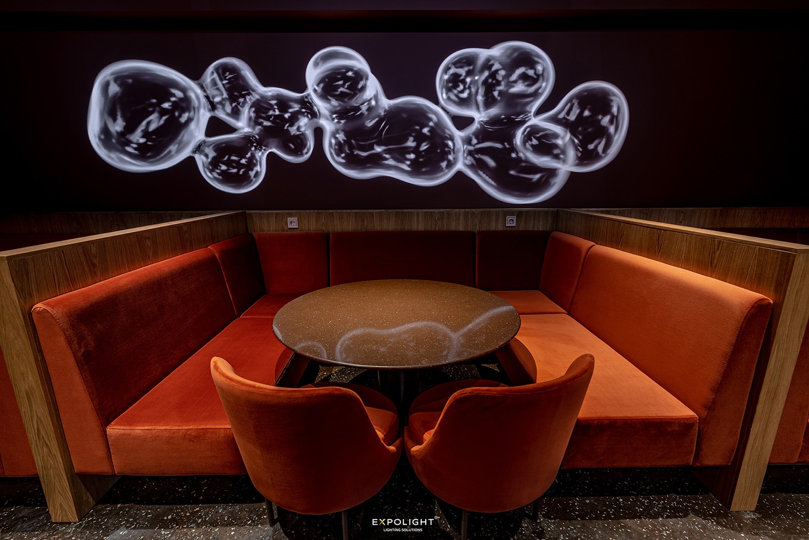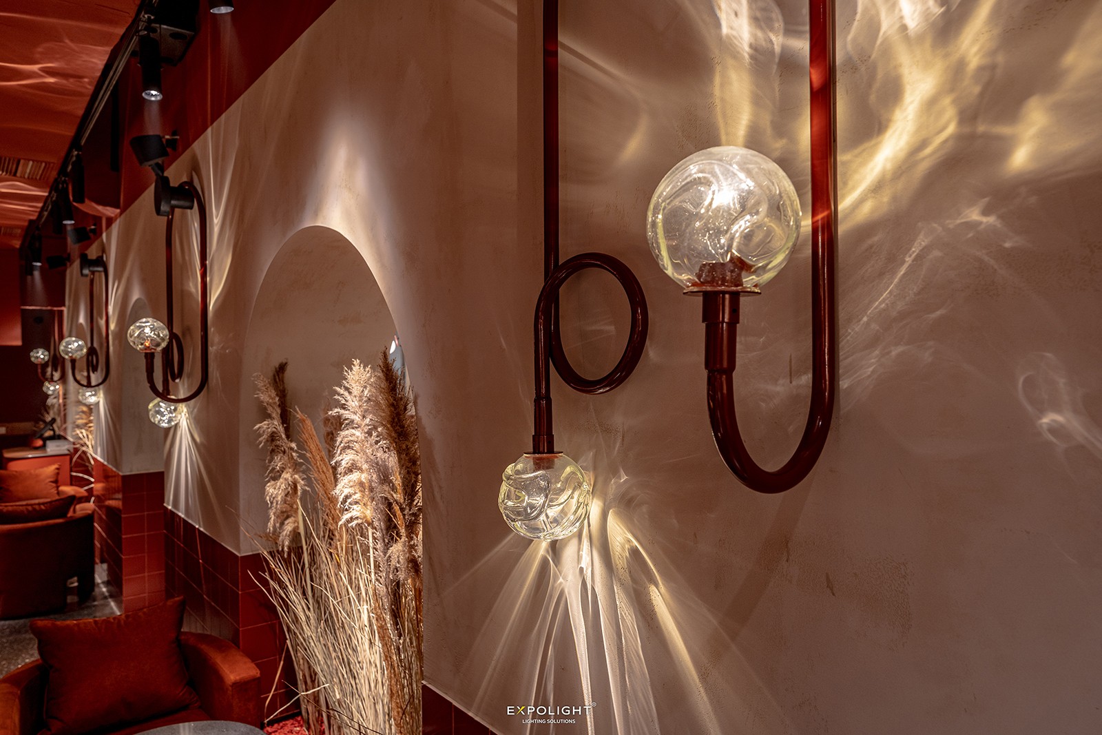 The ZMIST bar in Kyiv is another very interesting project in which we have comprehensively developed not only architectural lighting but also media projection and caustic sconces by our own glass-blowing production Optical Metaphor.