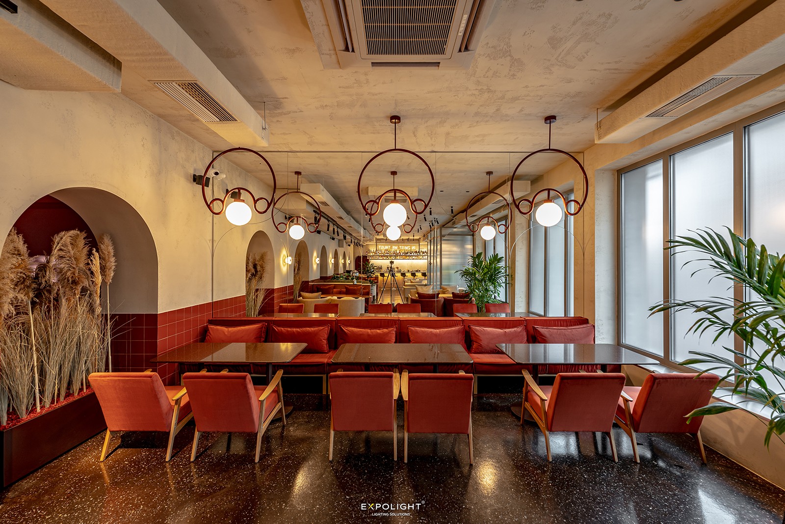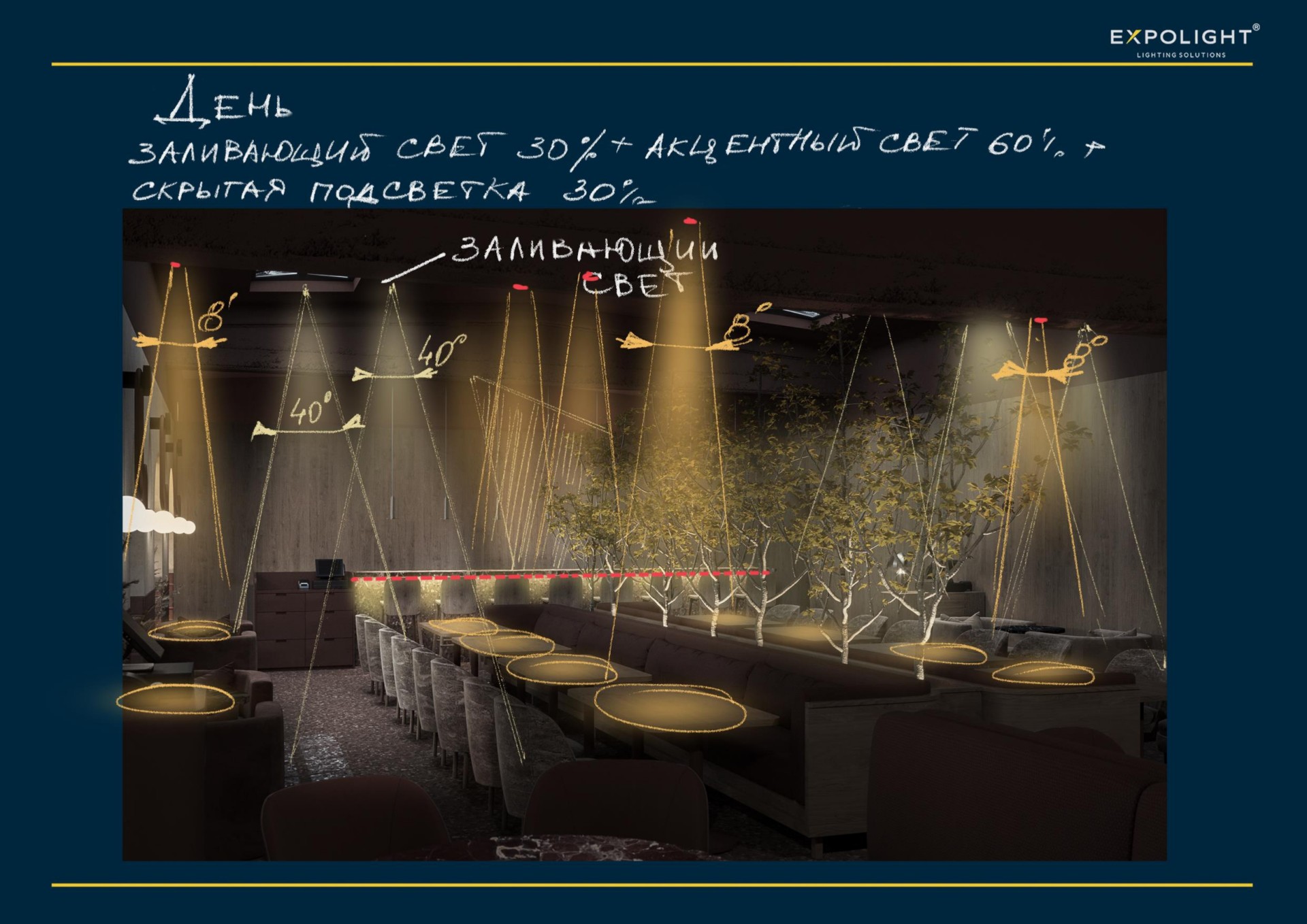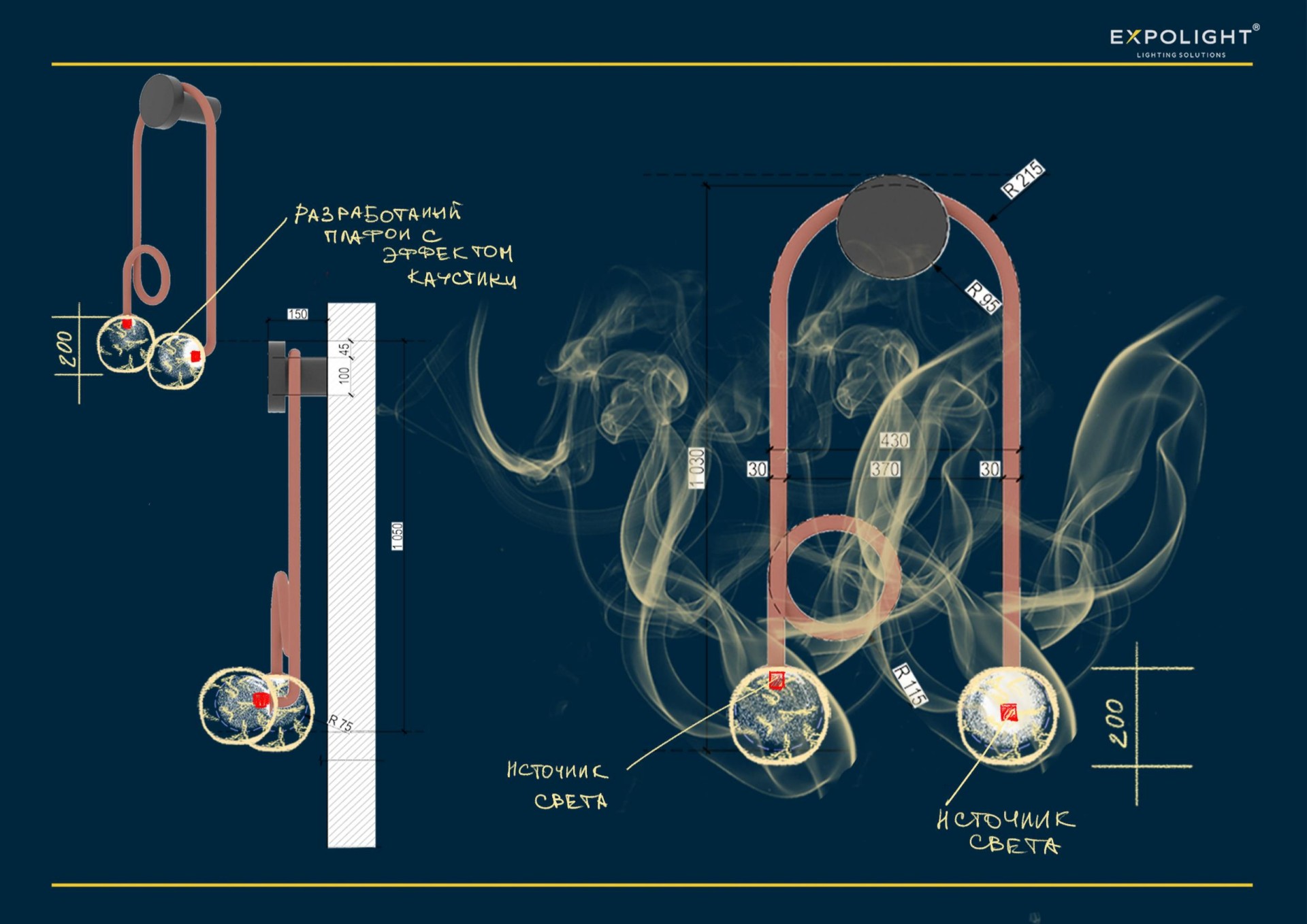The ZMIST bar in Kyiv is another very interesting project in which we have comprehensively developed not only architectural lighting but also media projection and caustic sconces by our own glass-blowing production Optical Metaphor.