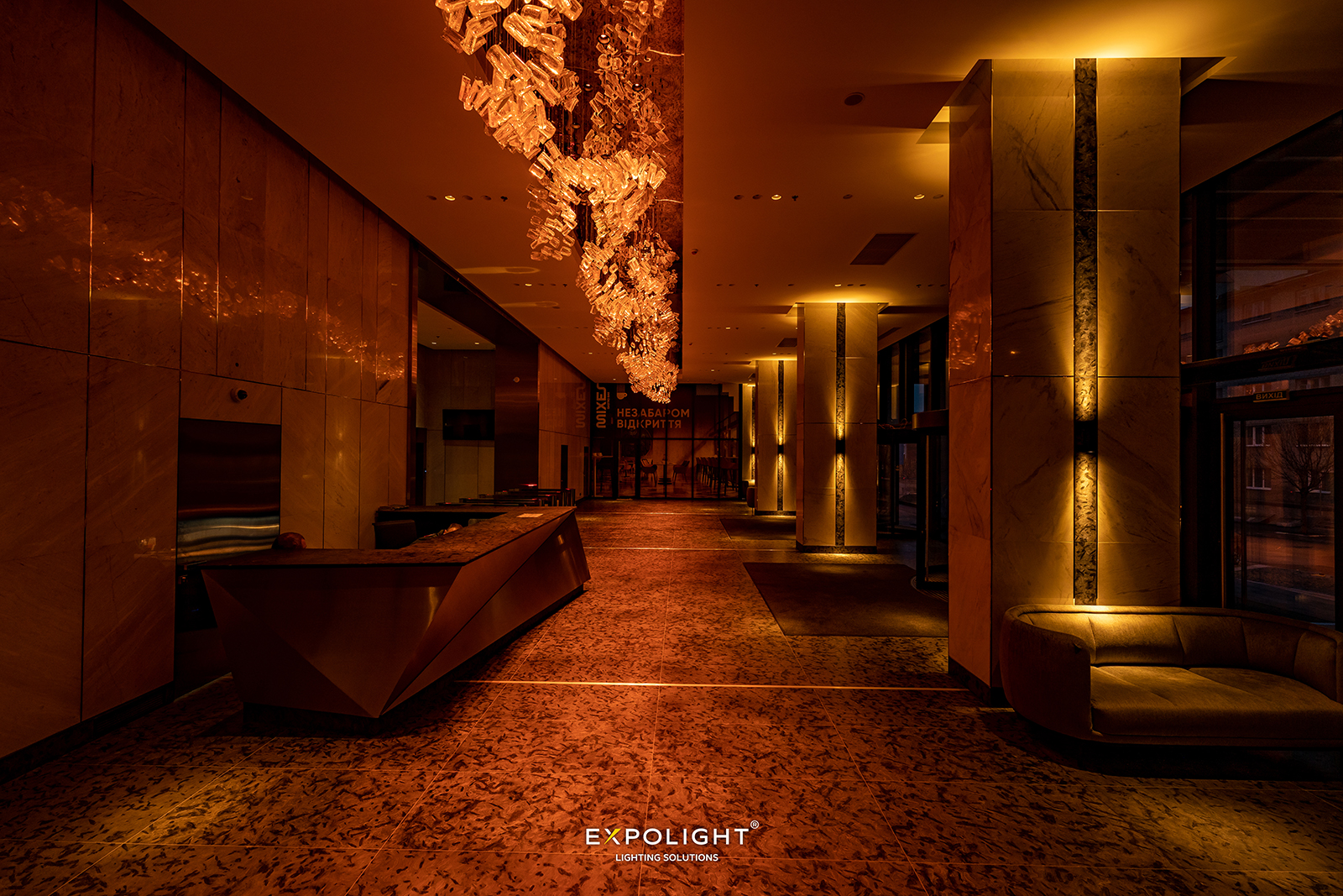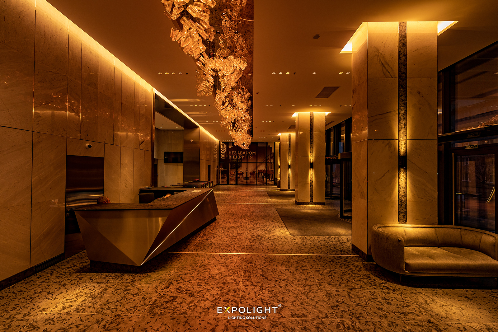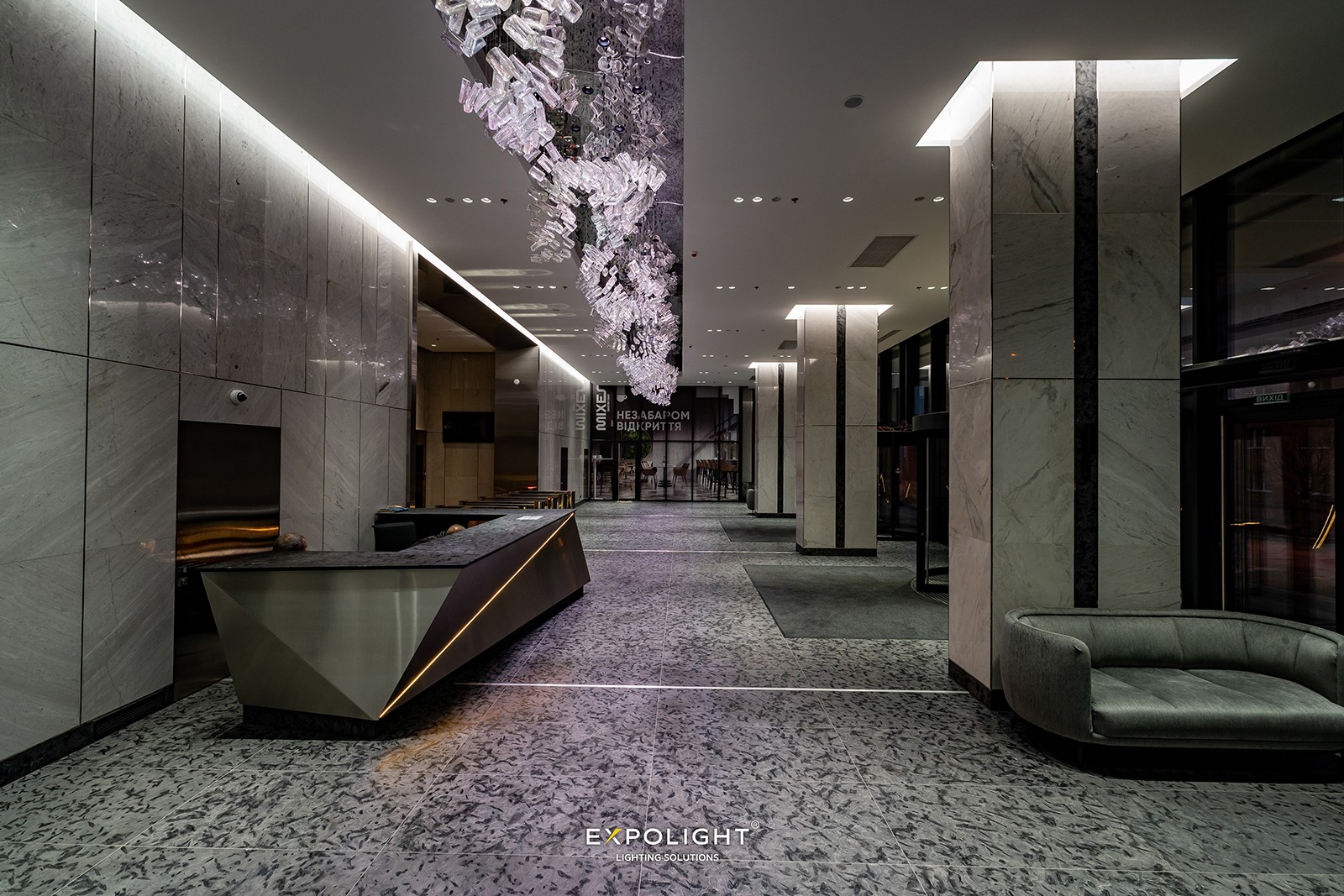 Люстра та внутрішнє архітектурне підсвічування в бізнес-центрі Arena Tower