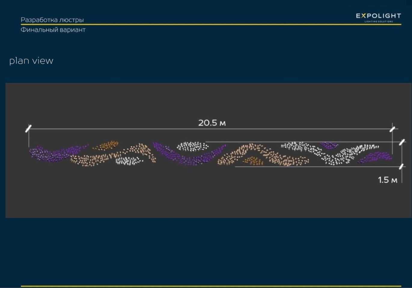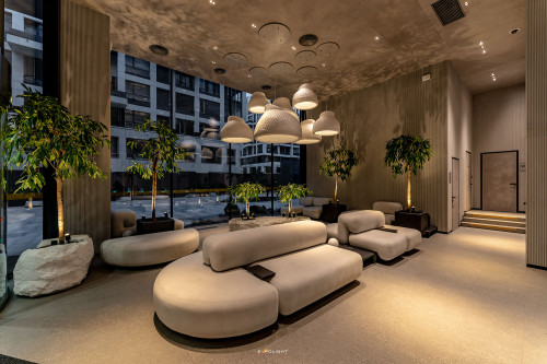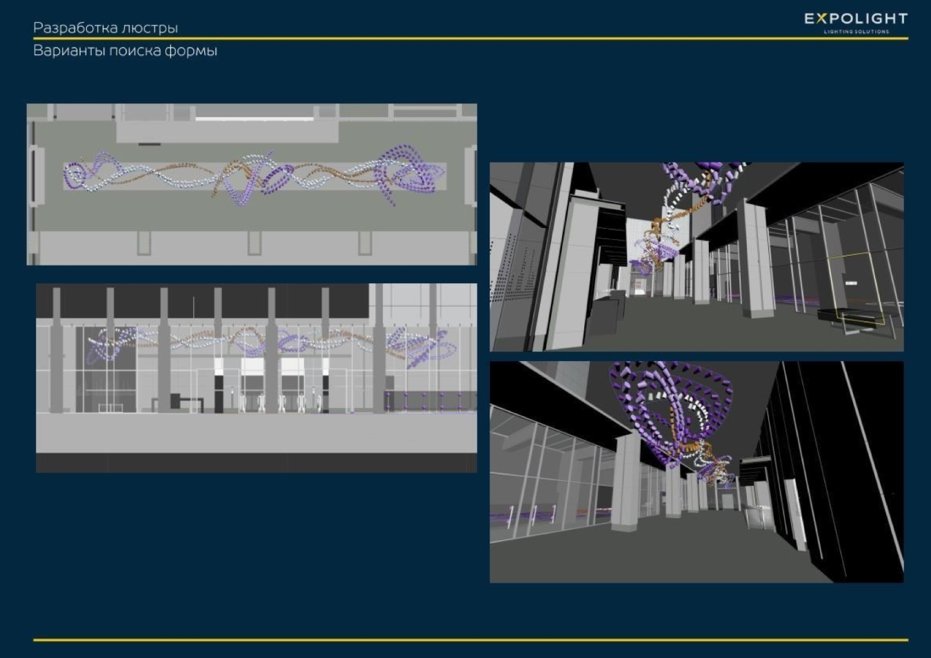 Ми зробили великий акцент на комфортному, високотехнологічному світлі. Ми розробили біодинамічне світло. Для нього ми згрупували спрямоване, розсіяне, приховане світло та бра. Всі групи мають змінну колірну температуру. Разом з люстрою створюємо сценарії біодинамічного освітлення, які перетікають один в одного щогодини, підлаштовуючись під колірну температуру і рівень світла ззовні.