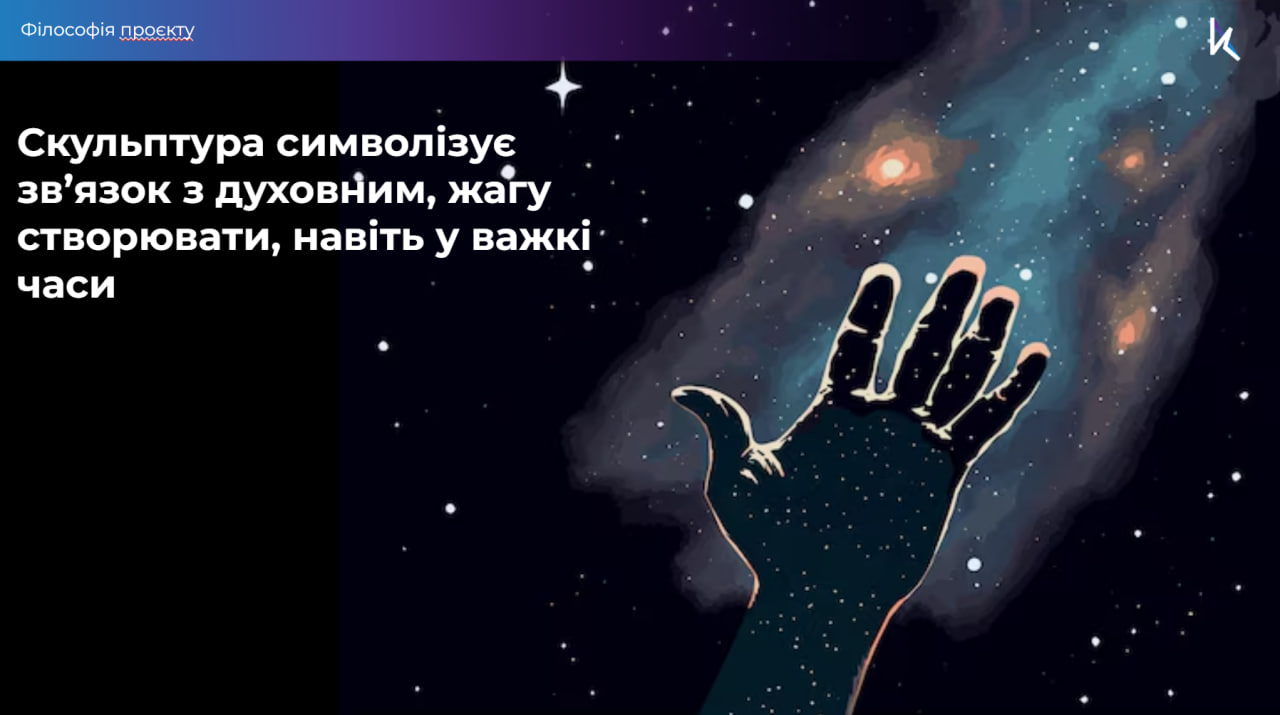 "The Point of Unity" — це медитативна скульптура, що поєднує небо і землю, людину й природу, теперішнє та майбутнє, вона стане символом міжнародної дипломатії та голосом України на міжнародній творчій арені.