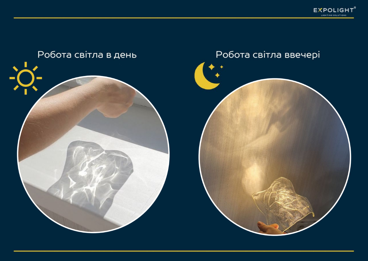 Через цю товщу скла при спрямованому акцентному світлі ці золоті ефекти сами себе дуже красиво проявляють, і ми отримуємо красиві живі бліки на підлозі навколо цієї інсталяції.