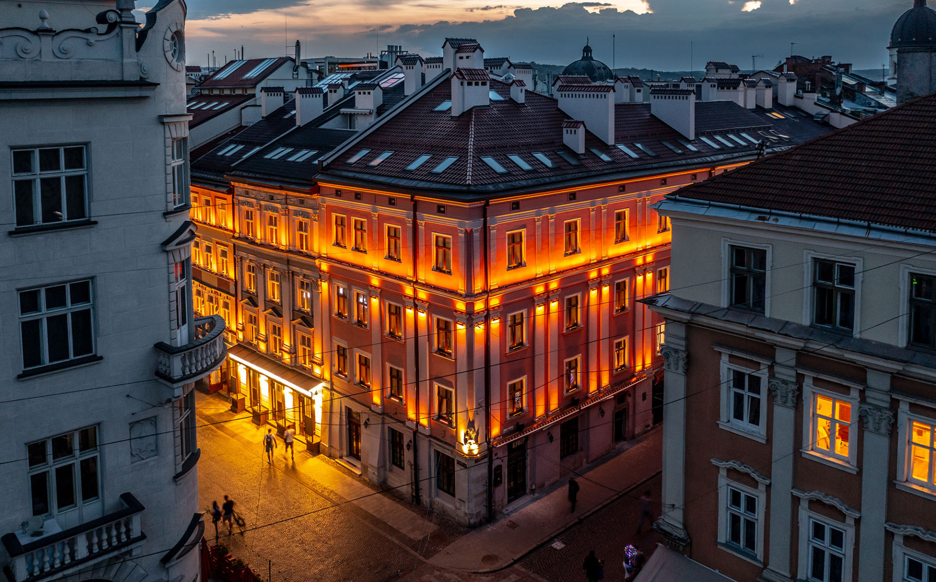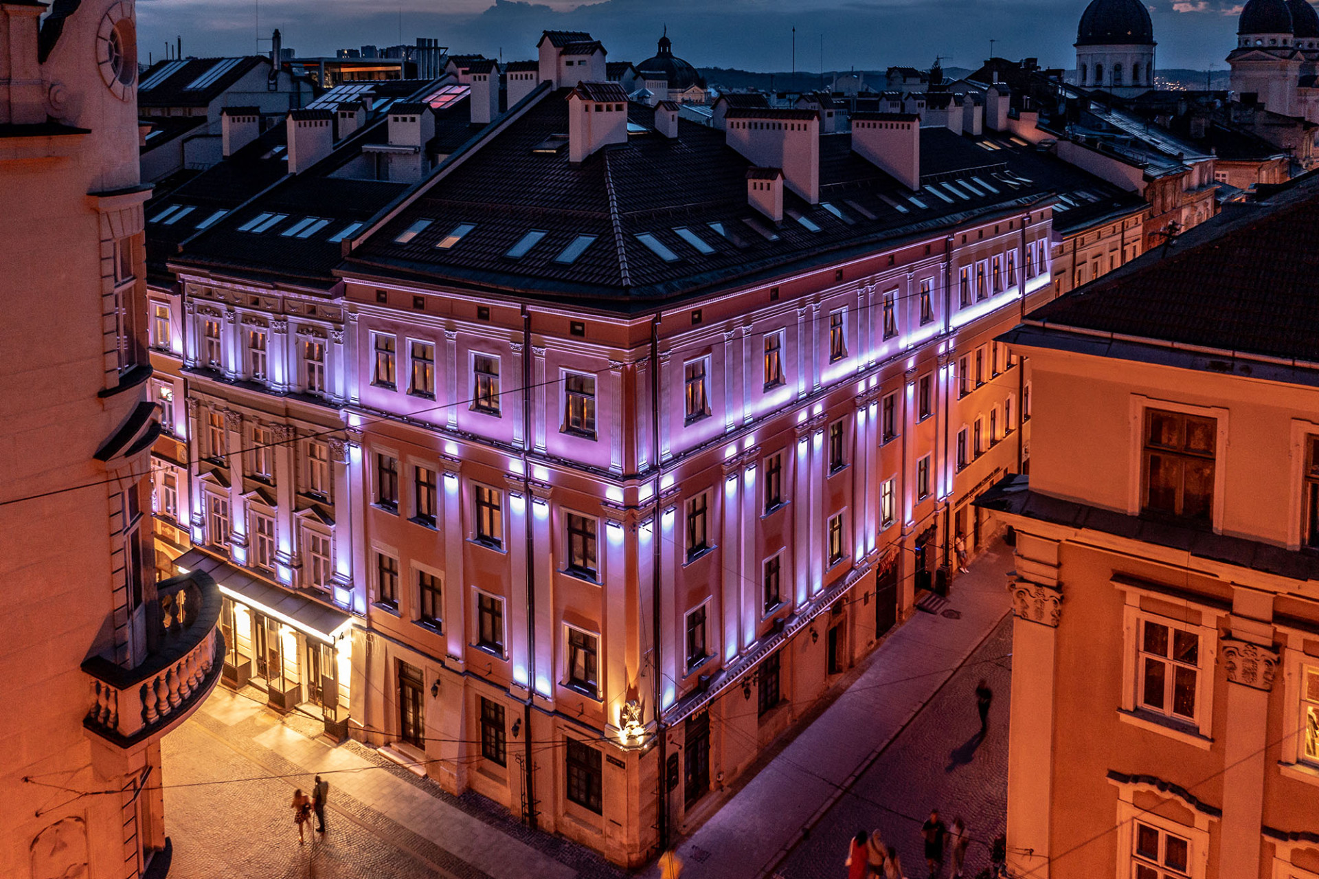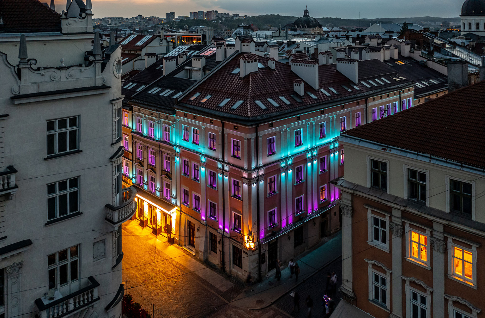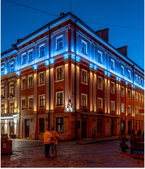 Це готель, який знаходиться в історичному центрі старого міста Львова. В цьому проєкті нашою задачею було поєднати традиційну підсвітку фасаду зі створенням незвичної атракції для містян та туристів, яких завжди багато у місті.