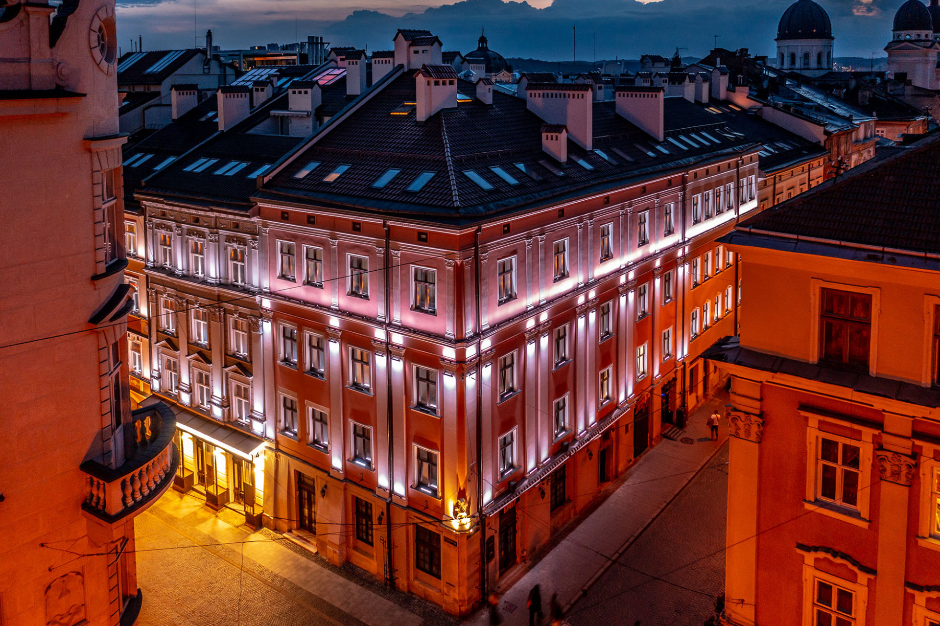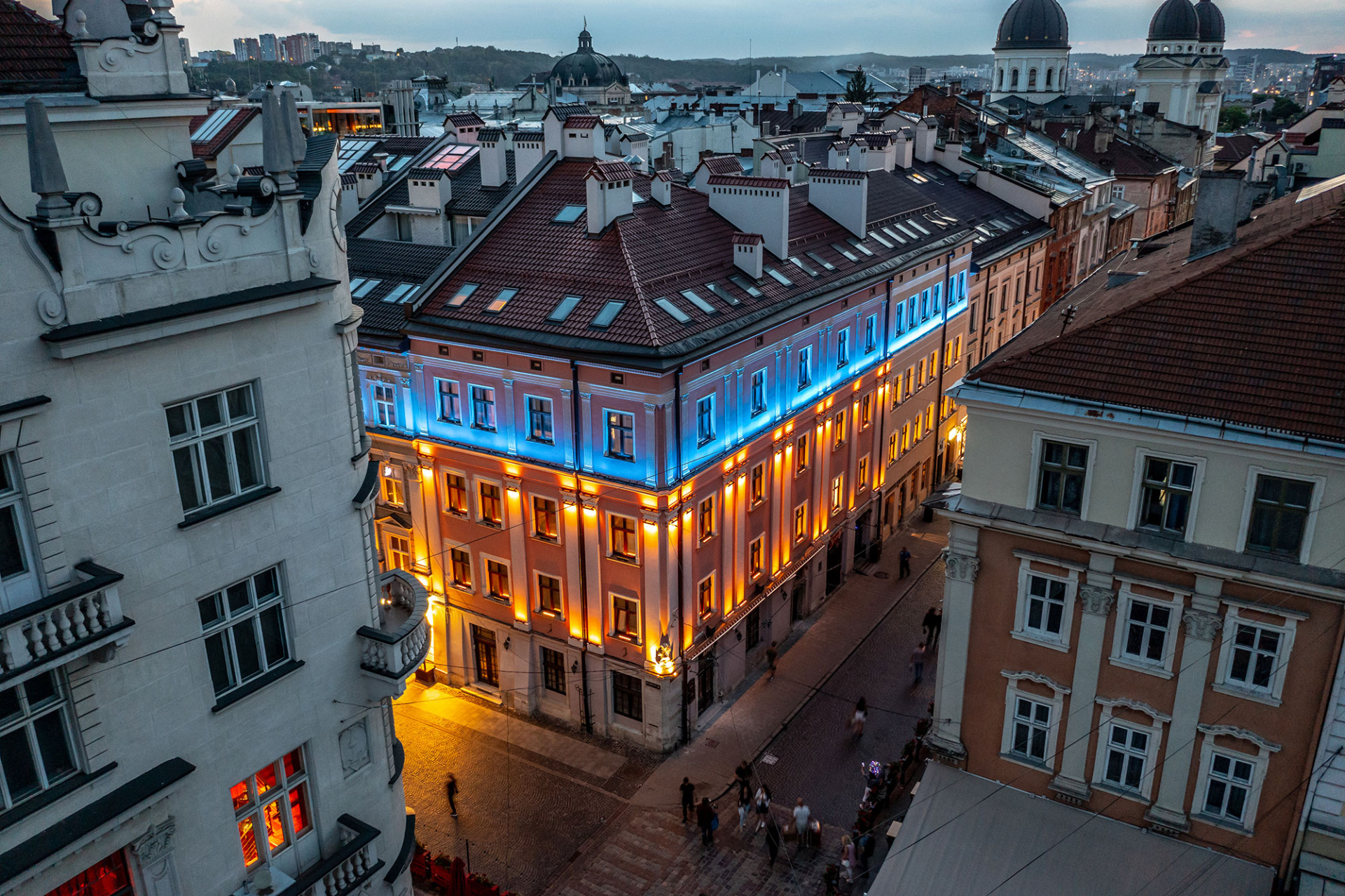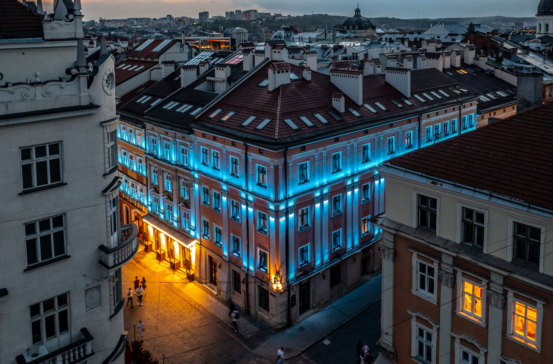 Це готель, який знаходиться в історичному центрі старого міста Львова. В цьому проєкті нашою задачею було поєднати традиційну підсвітку фасаду зі створенням незвичної атракції для містян та туристів, яких завжди багато у місті.