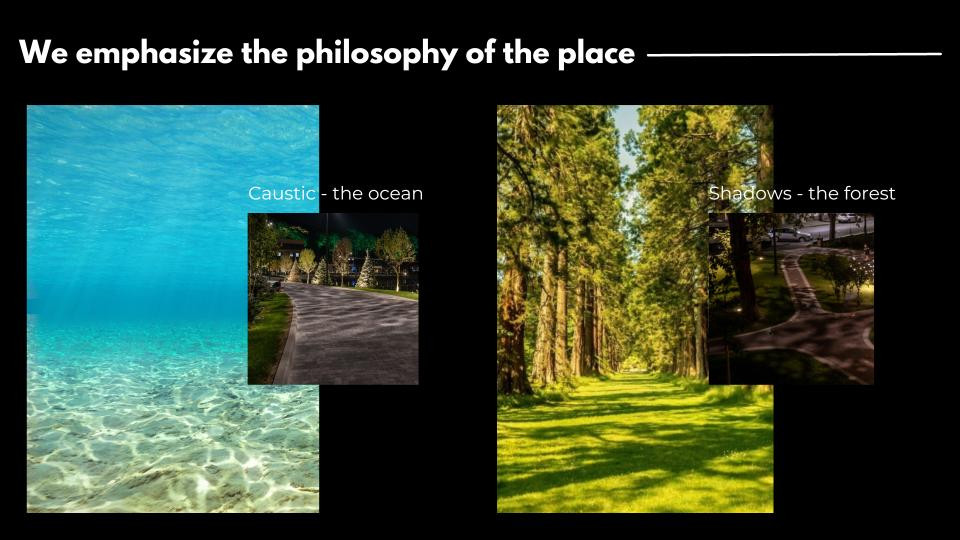 Додатково світильник має кастомний фільтр, що створює ефекти каустики або тіней на доріжках, який ідеально доповнить благоустрій приватних помешкань, готелів та resort-центрів.