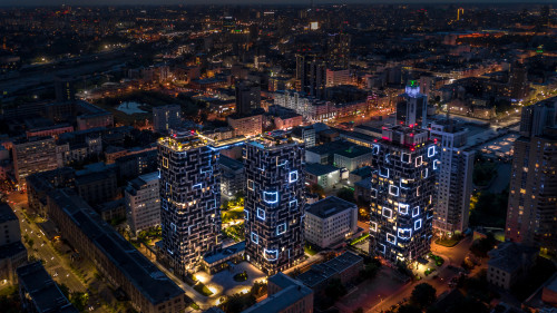 Куб у ЖК Chicago Cеntral House – це перша перманентна медіа-скульптура в Україні та чудовий приклад поєднання світлових технологій та цифрового мистецтва.