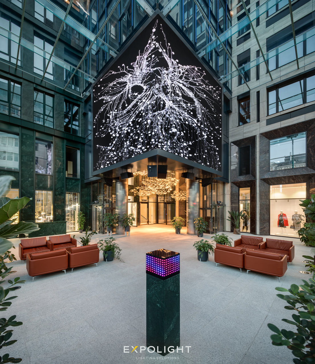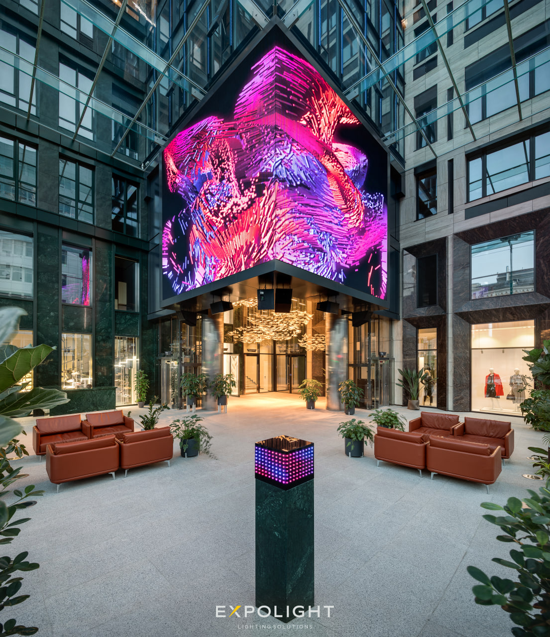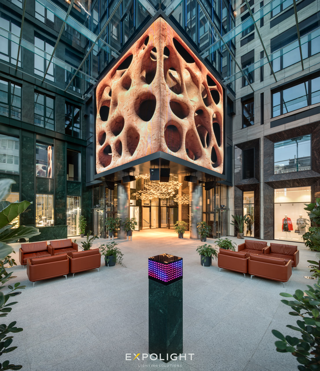 Куб у ЖК Chicago Cеntral House – це перша перманентна медіа-скульптура в Україні та чудовий приклад поєднання світлових технологій та цифрового мистецтва.