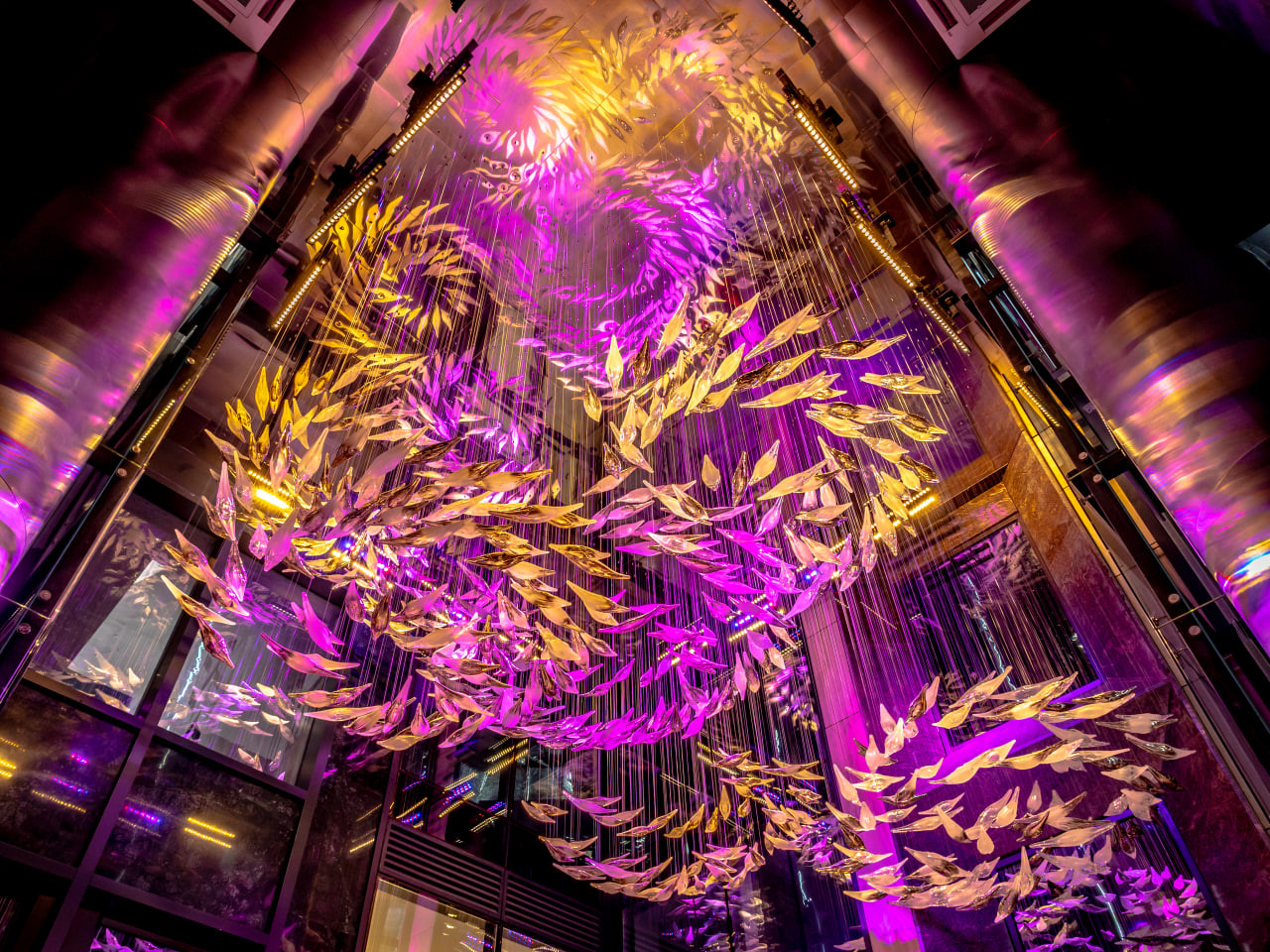 Спроектували та реалізували просторову скляну композицію силами нашого склодувного бренду Expolight ArtGlass в об'ємному внутрішньому просторі нашої медіа-скульптури у ЖК Chicago Cental House