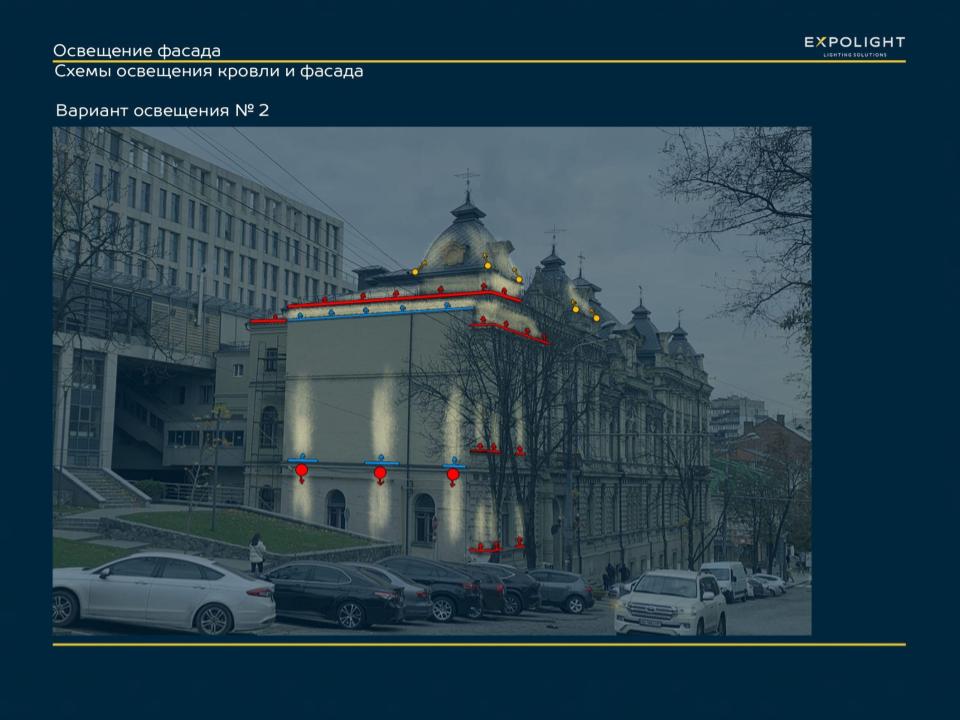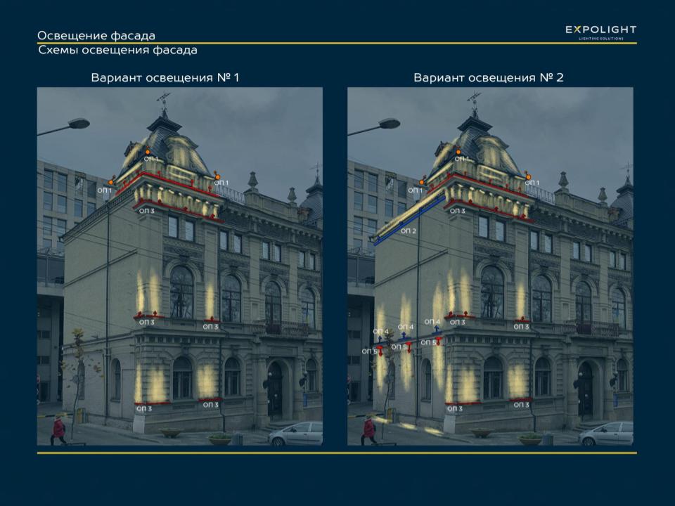 Для нас робота з таким складним проектом відчувалася немов дотик скрипаля до рідкісної скрипки Страдіварі. Тому кожну деталь ми розраховували, моделювали та доводили до досконалості. Ми дуже ретельно вибирали відтінки підсвічування, лінзи та кути прицілу світильників для різних рівнів фасаду. Для нас це завжди дуже важливий та трепетний момент.