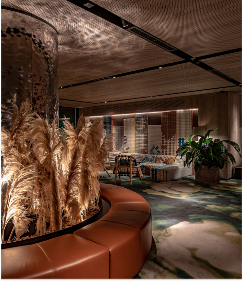 Ідея світловї концепції була створити висяче наче у невагомості дерево-скульптуру сяючим акцентом, і всю підлогу та стіни покрити складними органічними тіньовими паттернами та додатковими відображеннями дерева у частково скляних вертикальних поверхнях.