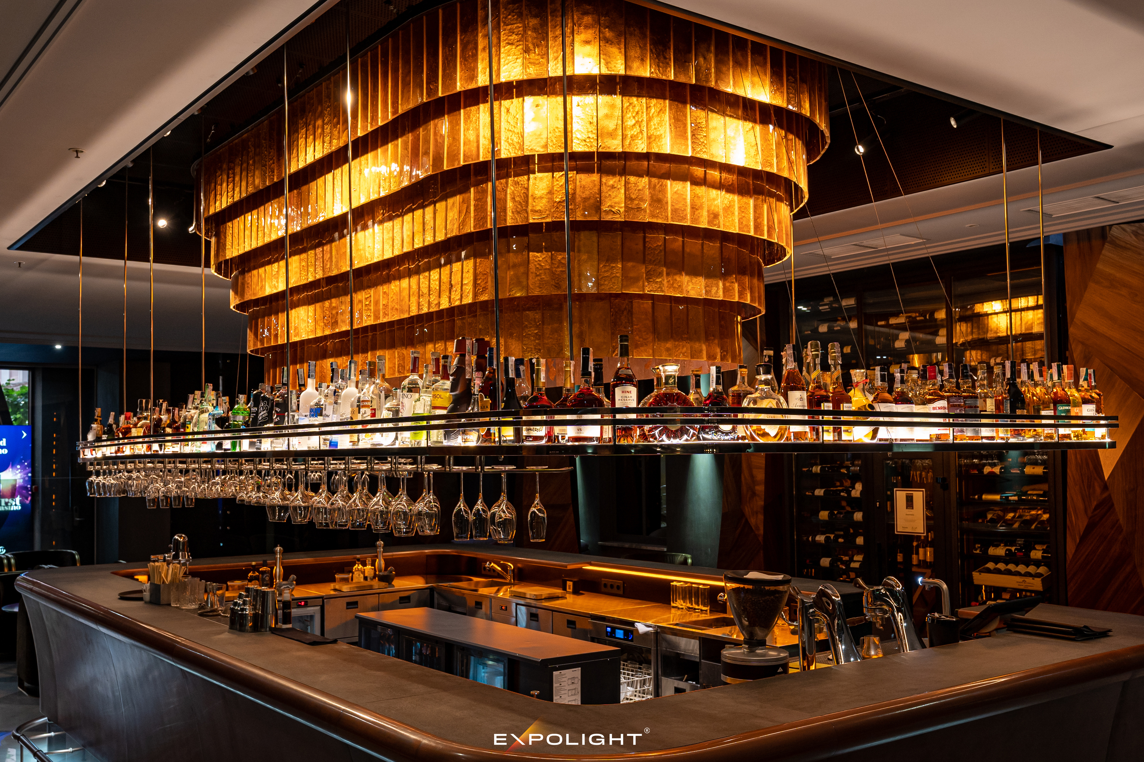 Всі три групи незалежно димуються і балансуються в світлові сценарії для ранку, дня та вечора завдяки нашому кастомному сервісу Expolight Cloud Control System. Готель живе нон-стоп, тому ця люстра перемикається в різні сценарії автоматично чотири рази на добу плавним повільним переходом.
