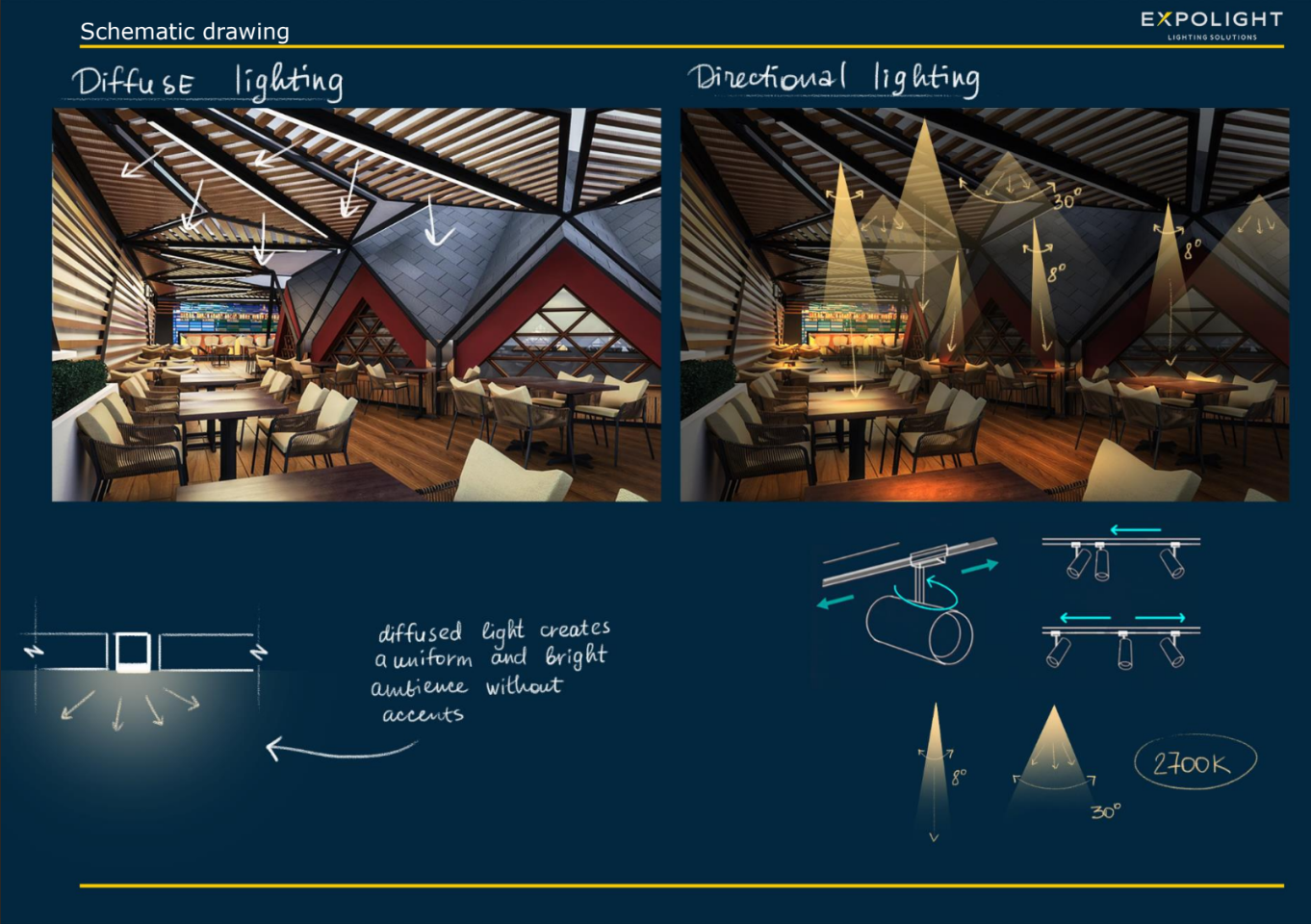 Всі елементи освітлення ми ув'язали в єдину систему управління, яка дозволяє змінювати світлові сценарії, забезпечуючи комфортну світлову атмосферу, що відповідає біоритмам людини і різним режимам.