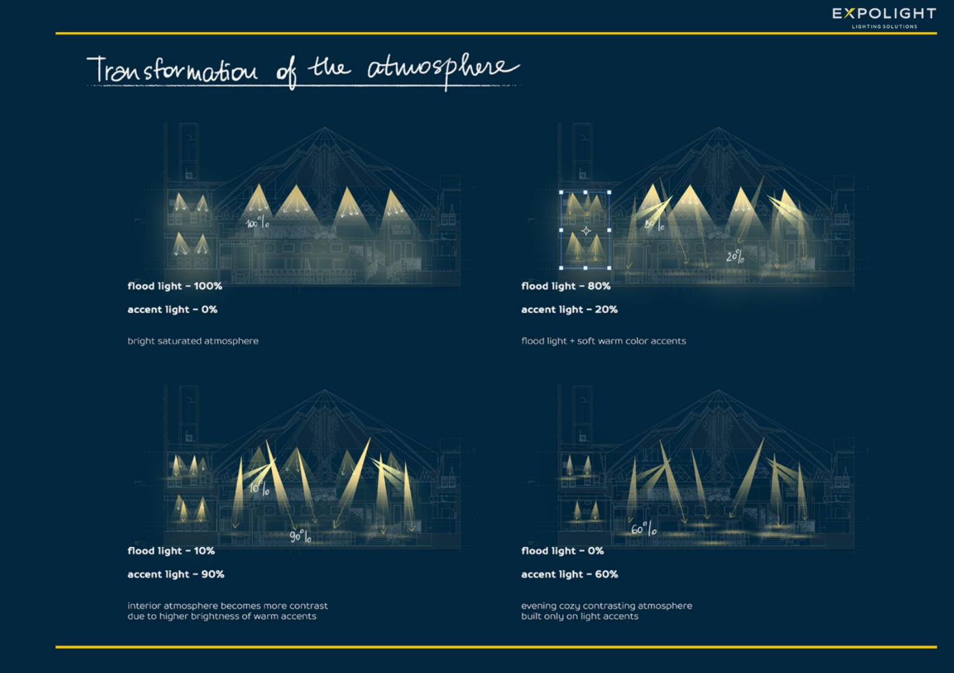 Тонкі налаштування світла ми пов’язуємо в одне ціле за допомогою нашого хмарного сервера Expolight Cloud Control System, за допомогою якого ми можемо керувати освітленням на об’єкті із різних точок земної кулі.