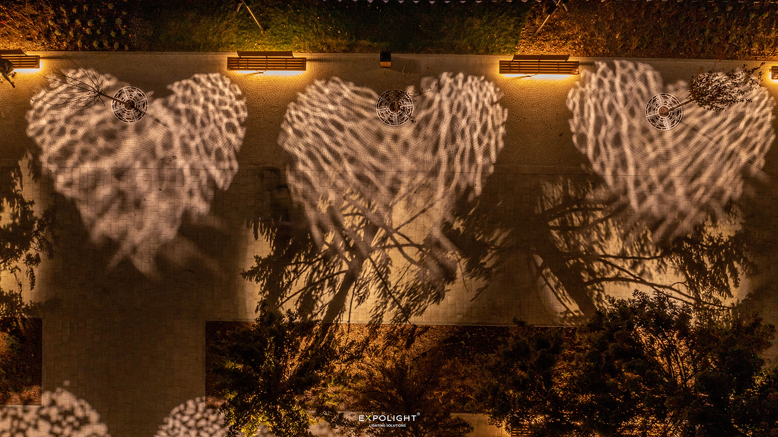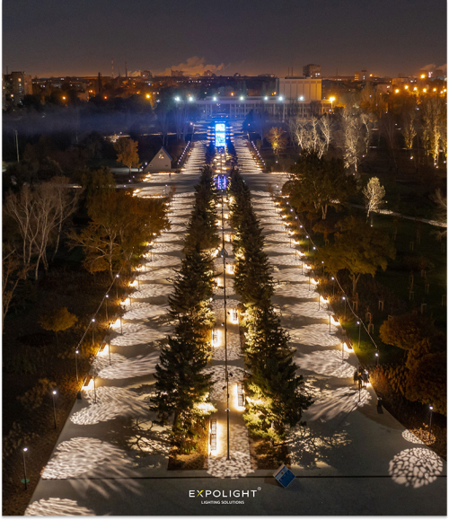 Ми також хотіли виділити велику кількість збережених старих паркових дерев і створити відчуття лісу посеред міста. Для цього ми виконували ювелірні роботи з тінями від дерев, а там, де їх було недостатньо, посилювали ефект за допомогою спеціально розроблених трафаретів тіней у виготовлених для цього лампах на замовлення, створюючи особливу камерну атмосферу ввечері.