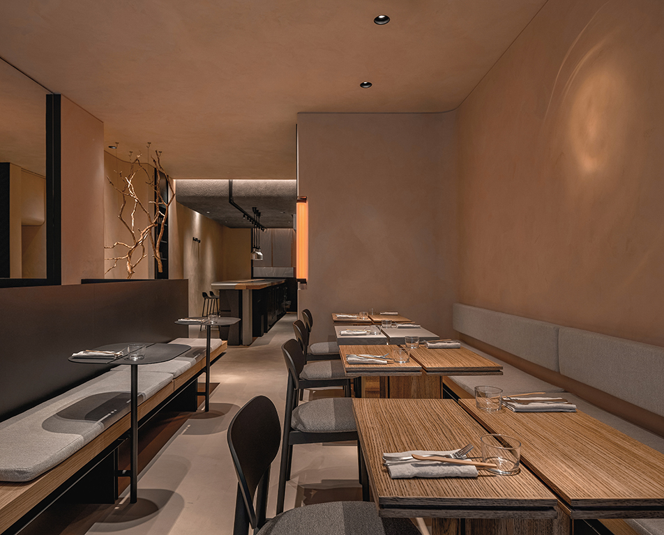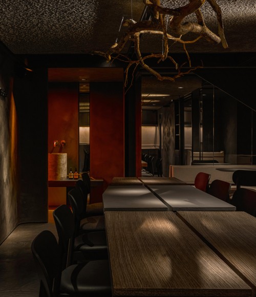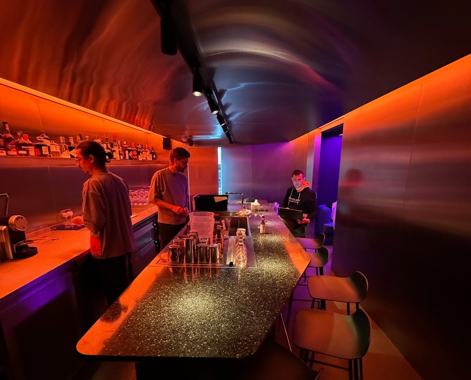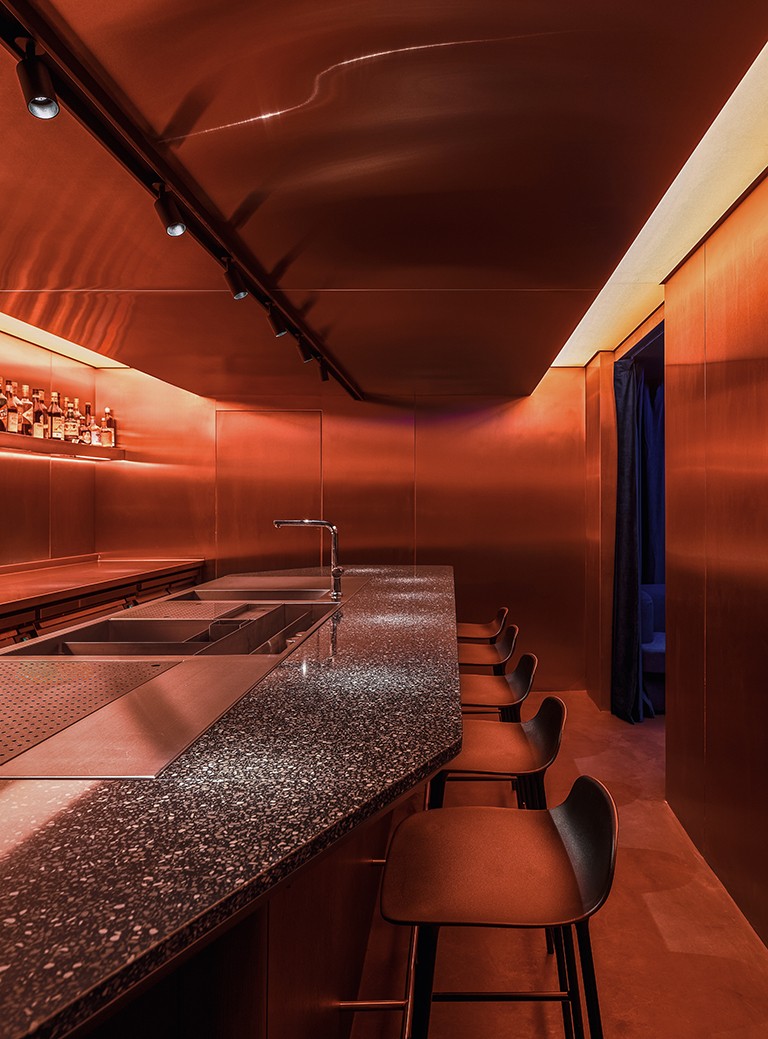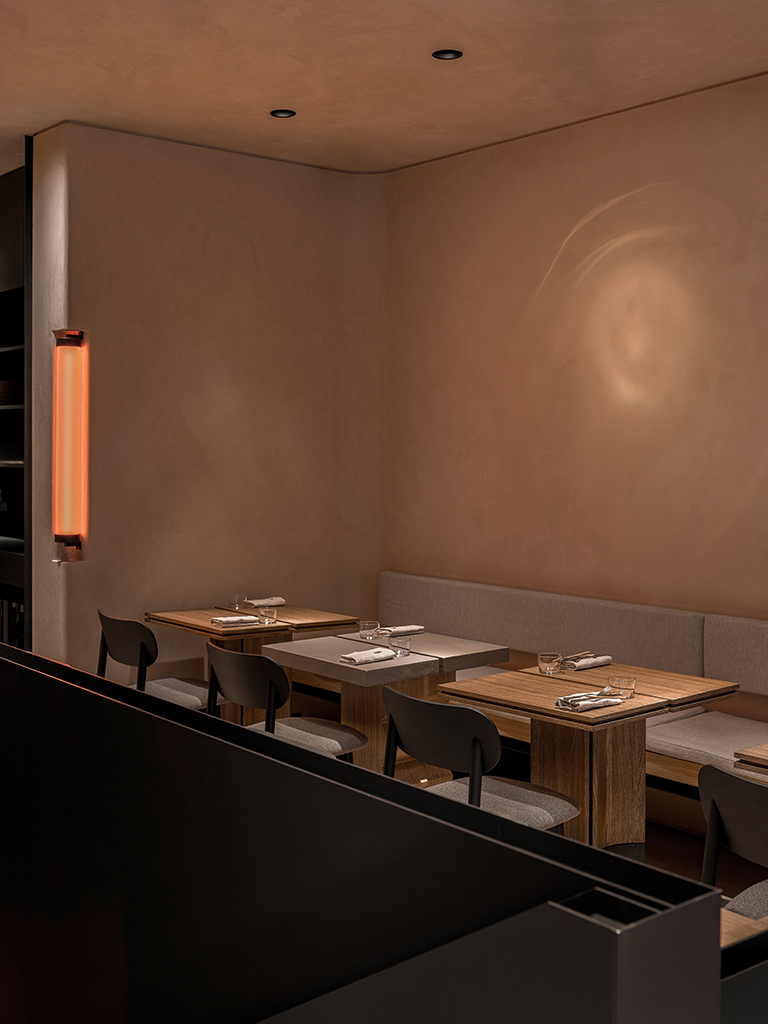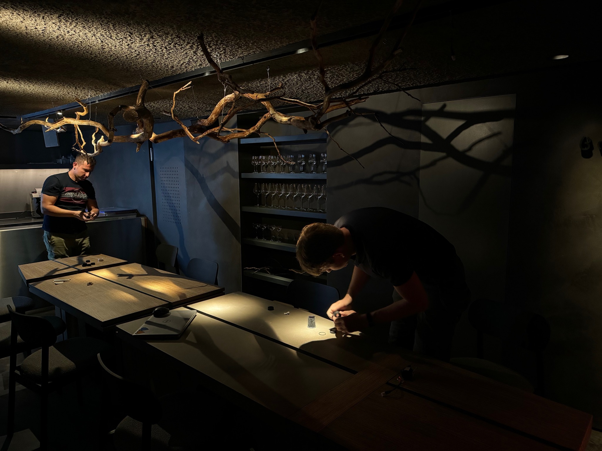 Цей заклад поєднує у собі елегантний ресторан та сучасний бар з коктейлями. Спеціально для цього проєкту ми розробили кастомні світильники Expolight Instruments з ефектом гало-каустики, патерн якого можна регулювати вручну, отримуючи унікальний візерунок на поверхні, що нагадує сонце за обрієм.