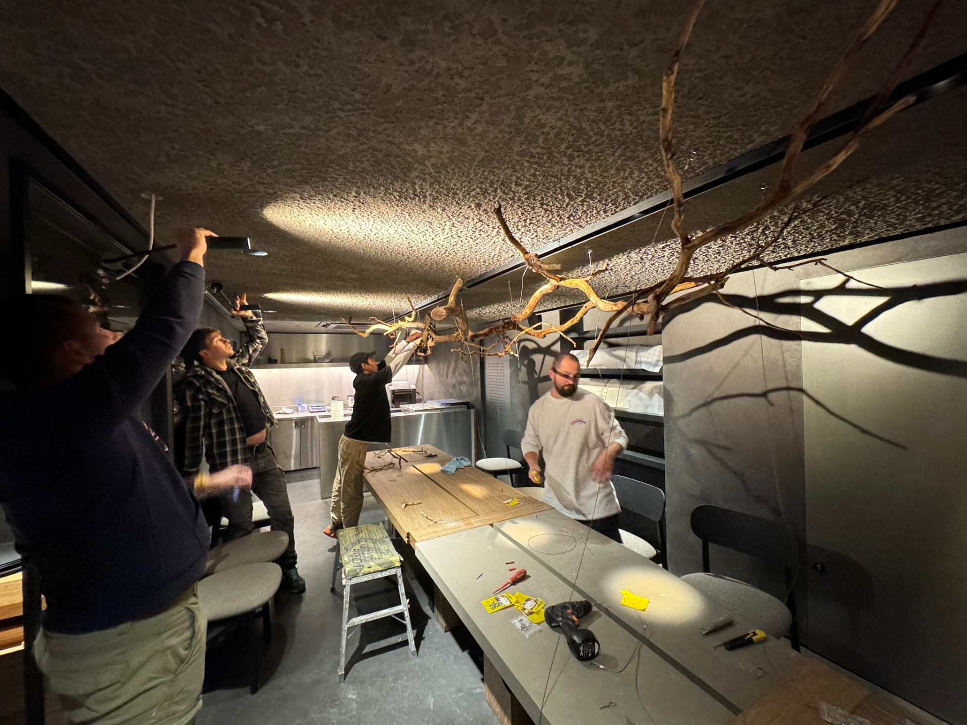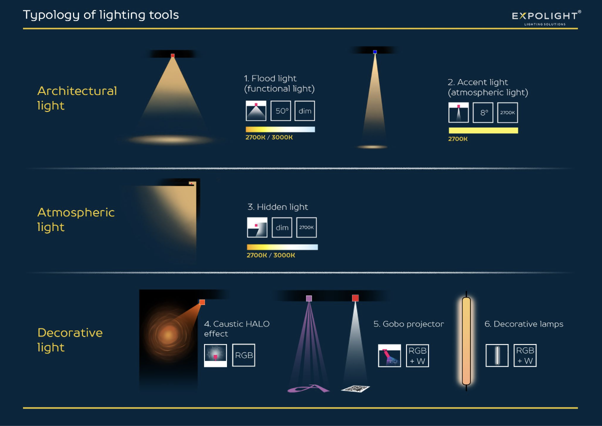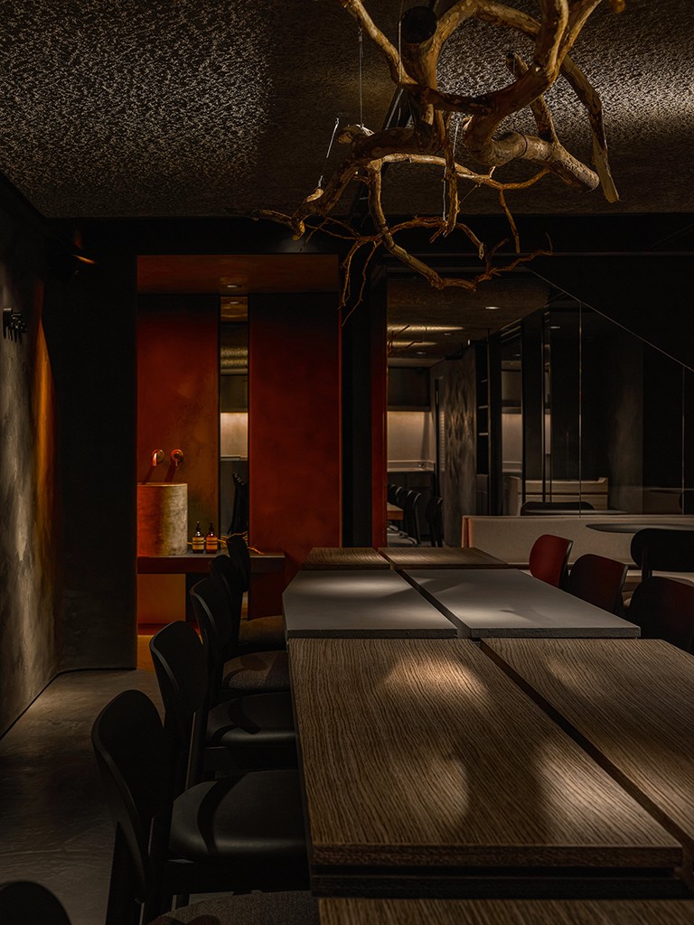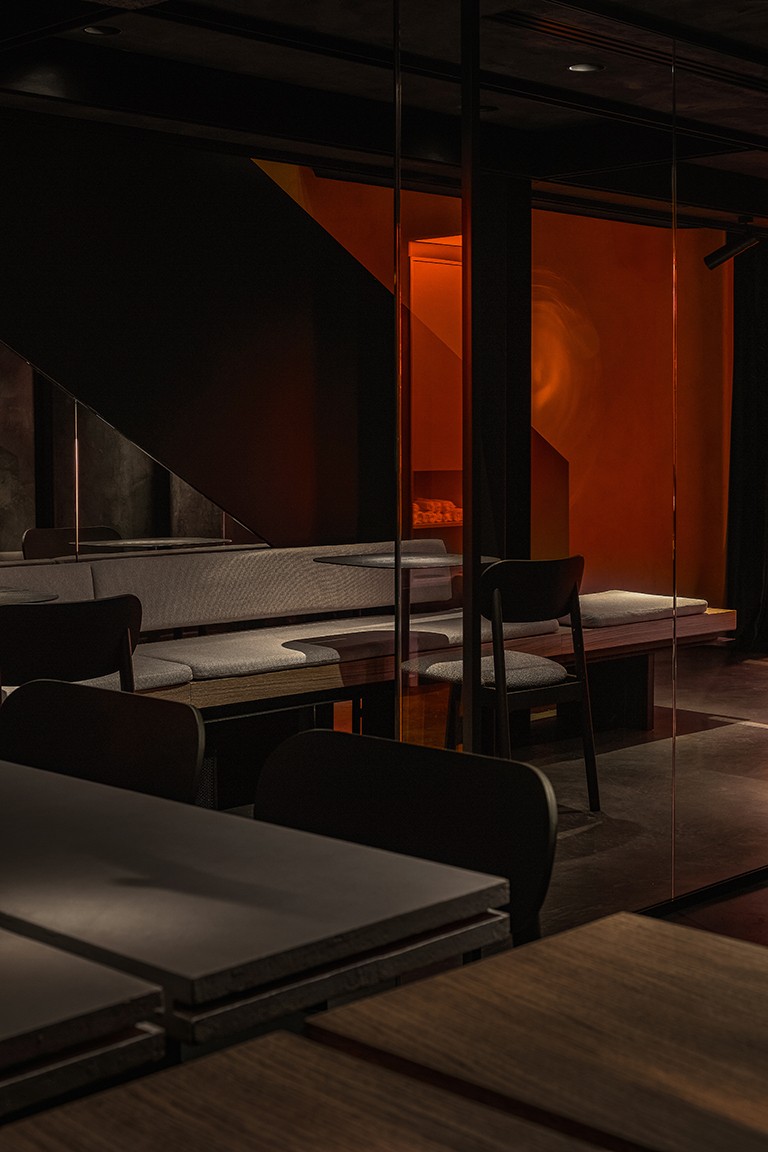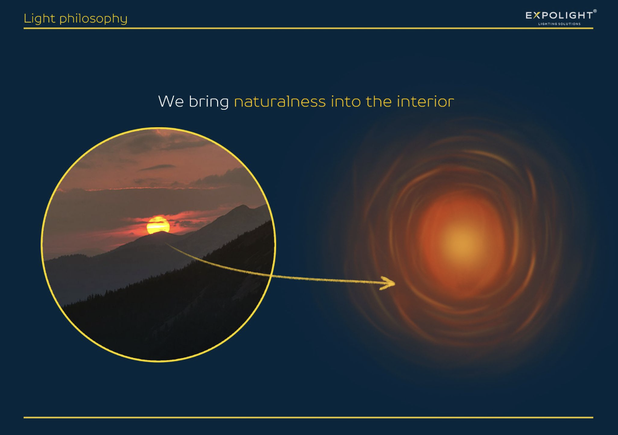Цей заклад поєднує у собі елегантний ресторан та сучасний бар з коктейлями. Спеціально для цього проєкту ми розробили кастомні світильники Expolight Instruments з ефектом гало-каустики, патерн якого можна регулювати вручну, отримуючи унікальний візерунок на поверхні, що нагадує сонце за обрієм.