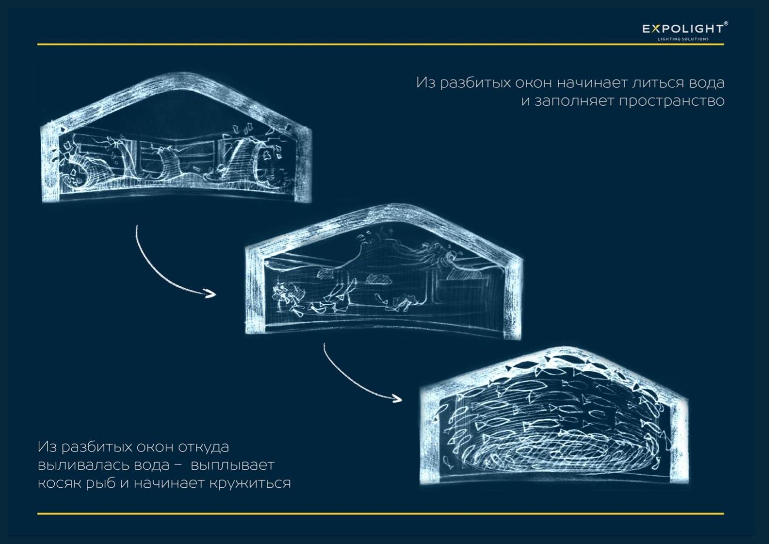 Ми дуже насолоджуємось таким творчим процесом, тим паче усі етапи створення видовищної медіа-голограми проводились усередині нашої команди Expolight. Це і продумування сценарію, і наброски олівцем структури елементів концепції, і продумування геометрії віртуального простору, і розкадрування для кожного спецефекту, і саунд-дизайн зі звуковими ефектами. Ми проаналізували ракурси та знайшли оптимальну точку, з якою кадр працюватиме максимально вдало, і під неї підлаштовували візуальні вау-ефекти.