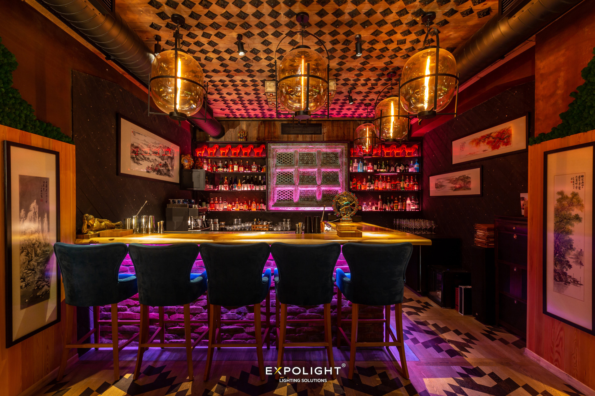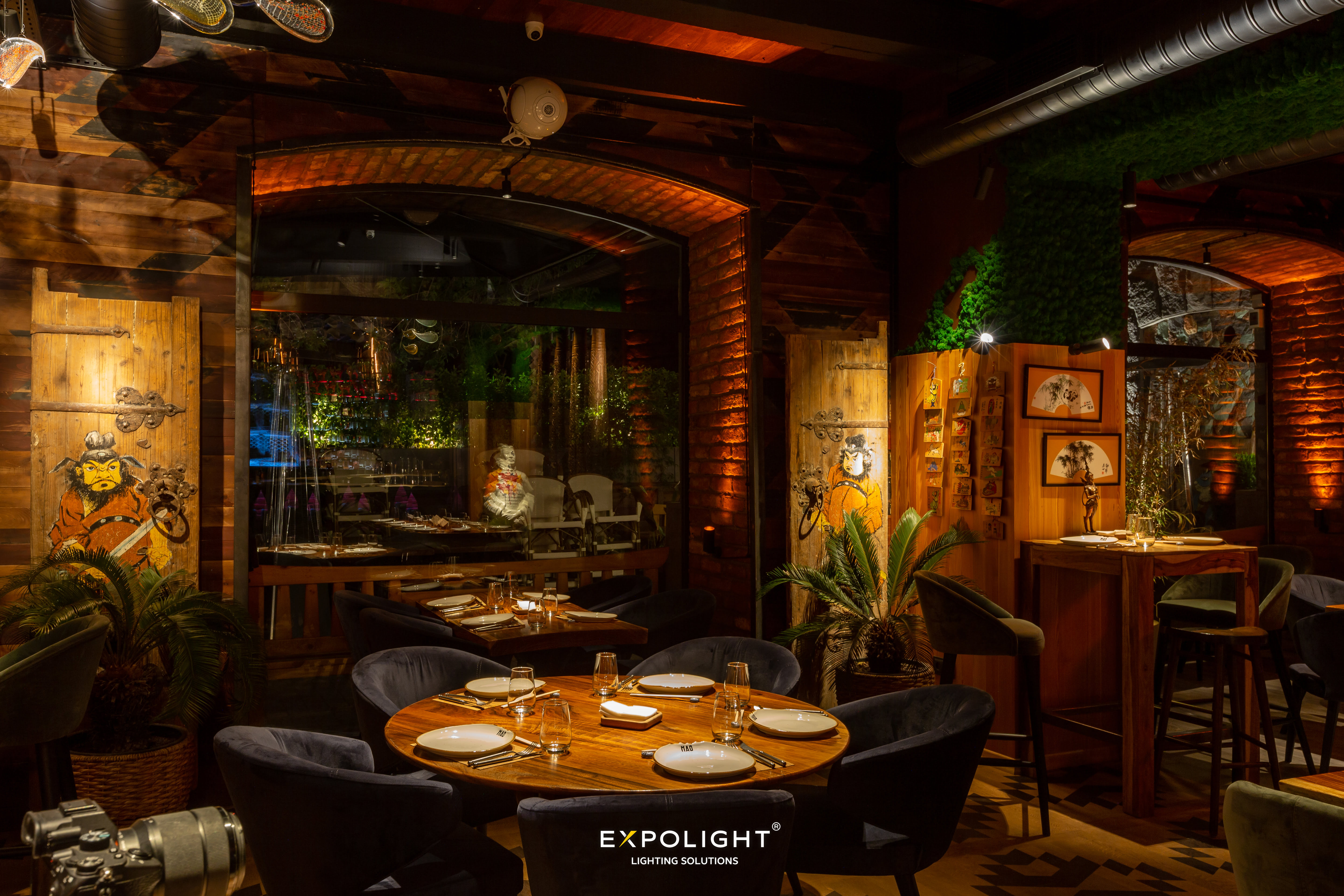 Світлові сценарії в МАО змінюються протягом доби, створюючи максимально комфортну для відвідувачів атмосферу. Все це керується нашим хмарним сервером Expolight Cloud Control System, який, немов чарівна паличка, допомагає нам з налаштуванням та обслуговуванням проєктів по всьому світу з телефону чи ноутбуку.
