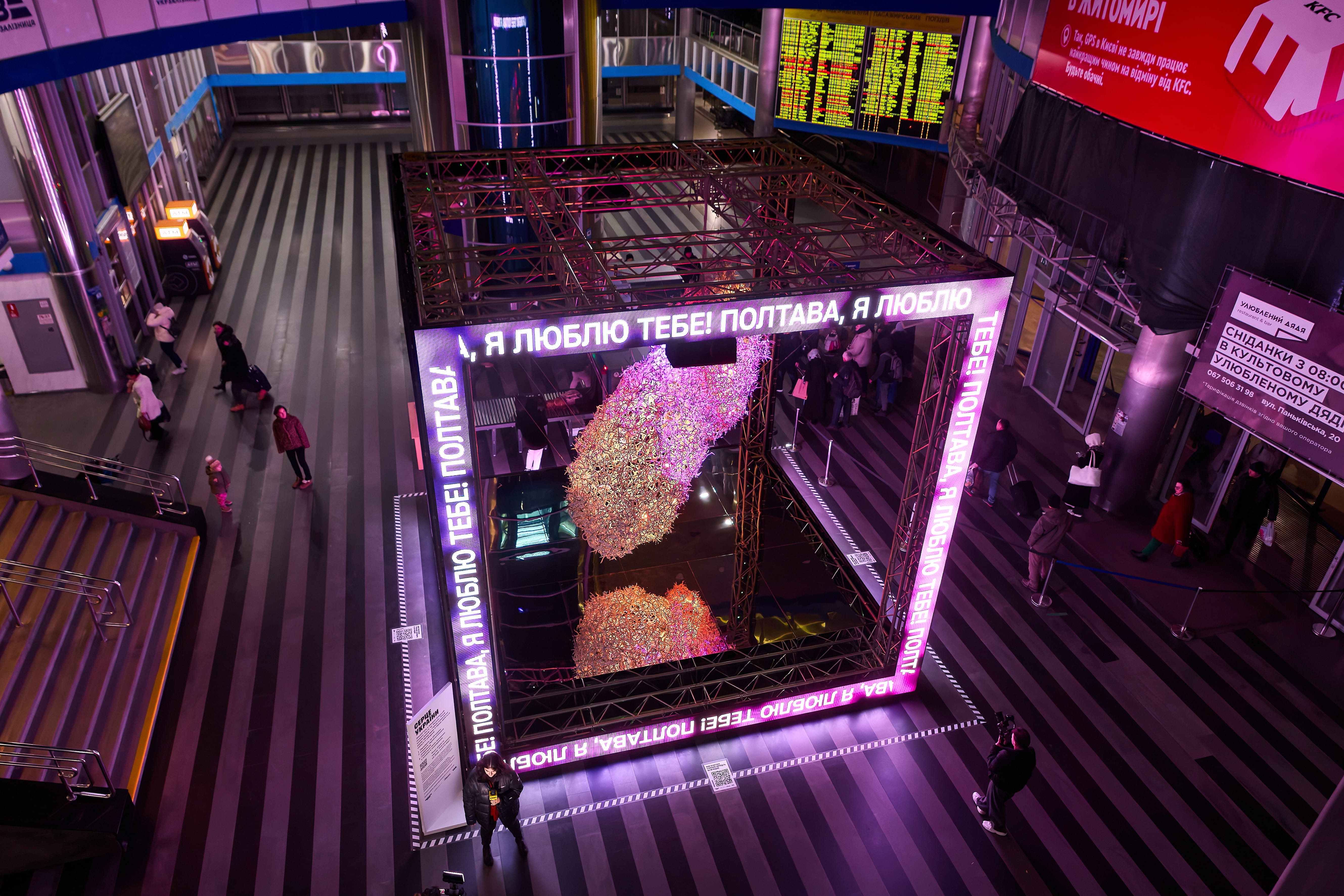 Але цього разу “Серце України” стало ще більш масштабним! По-перше, враховуючи масштабний простір південного вокзалу, ми зробили його набагато більшим. А також інтерактивним - кожен зможе відчути, як Серце України б’ється в унісон із нашим власним.