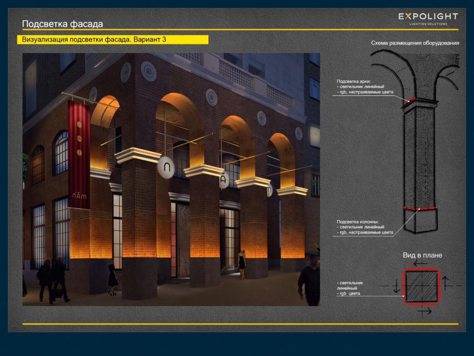 У нашому проекті освітлення ресторану NĂM Modern Vietnamese Cuisine від замовниківспочатку виходив запит на використання театральних сценічних прийомів у освітленні у формуванні атмосфери.