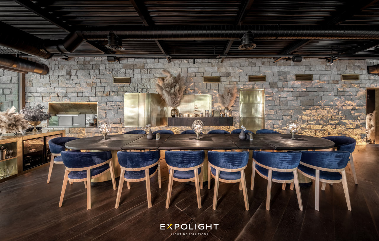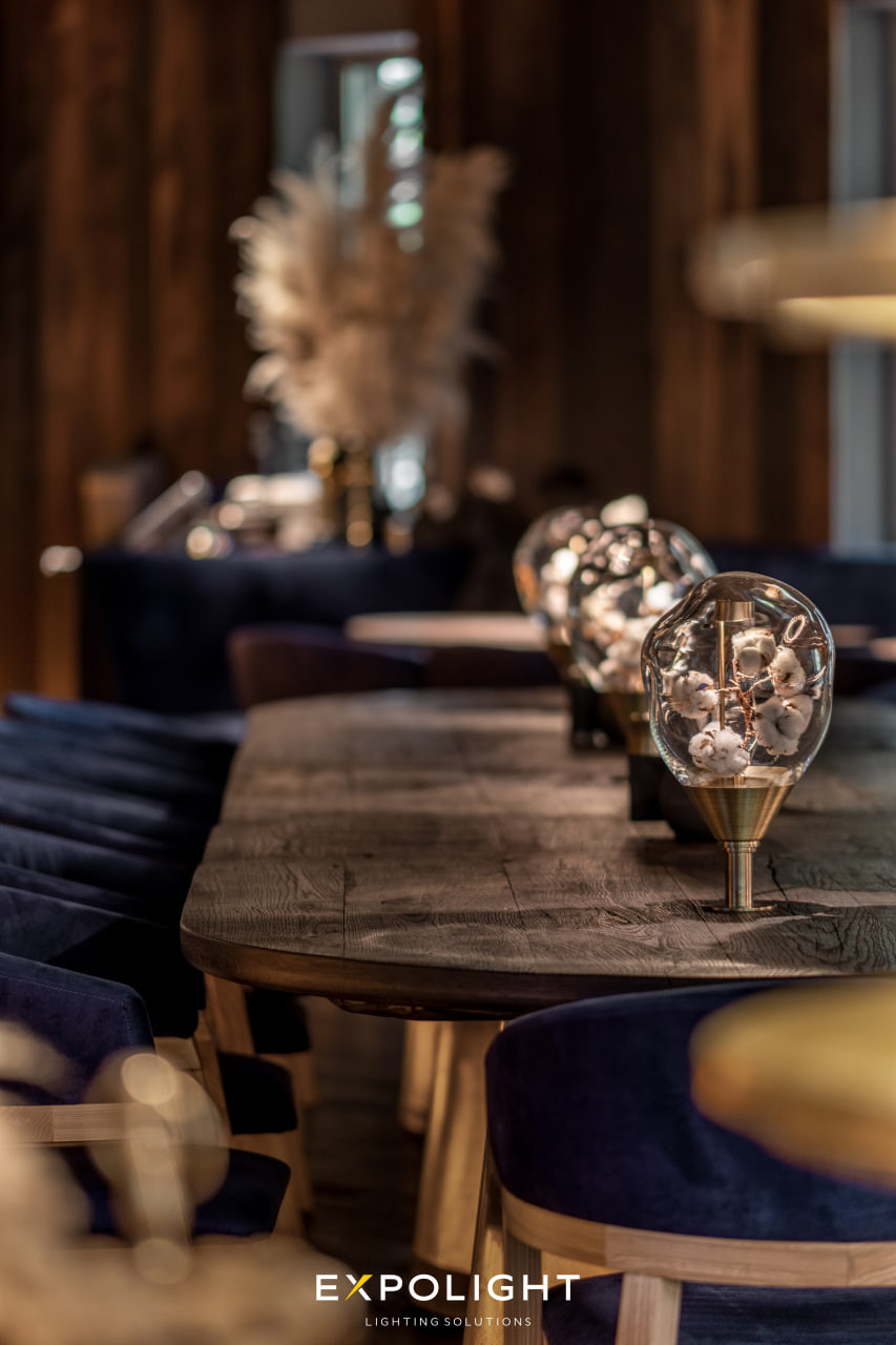 Разом з архітекторами на основі їхніх принципових ідей ми відточуємо дизайн, створюємо конструктив світильників і проєктуємо для них світлові рішення. Таким чином, розробляючи і загальний світловий дизайн просторів, впроваджуємо склодувні елементи та інтегруємо їх разом зі світловими рішеннями в загальне світло. Так переплітаються наші два напрямки - світлотехнічна складова Expolight і світло-склодувний дочірній бренд Optical Metaphor.