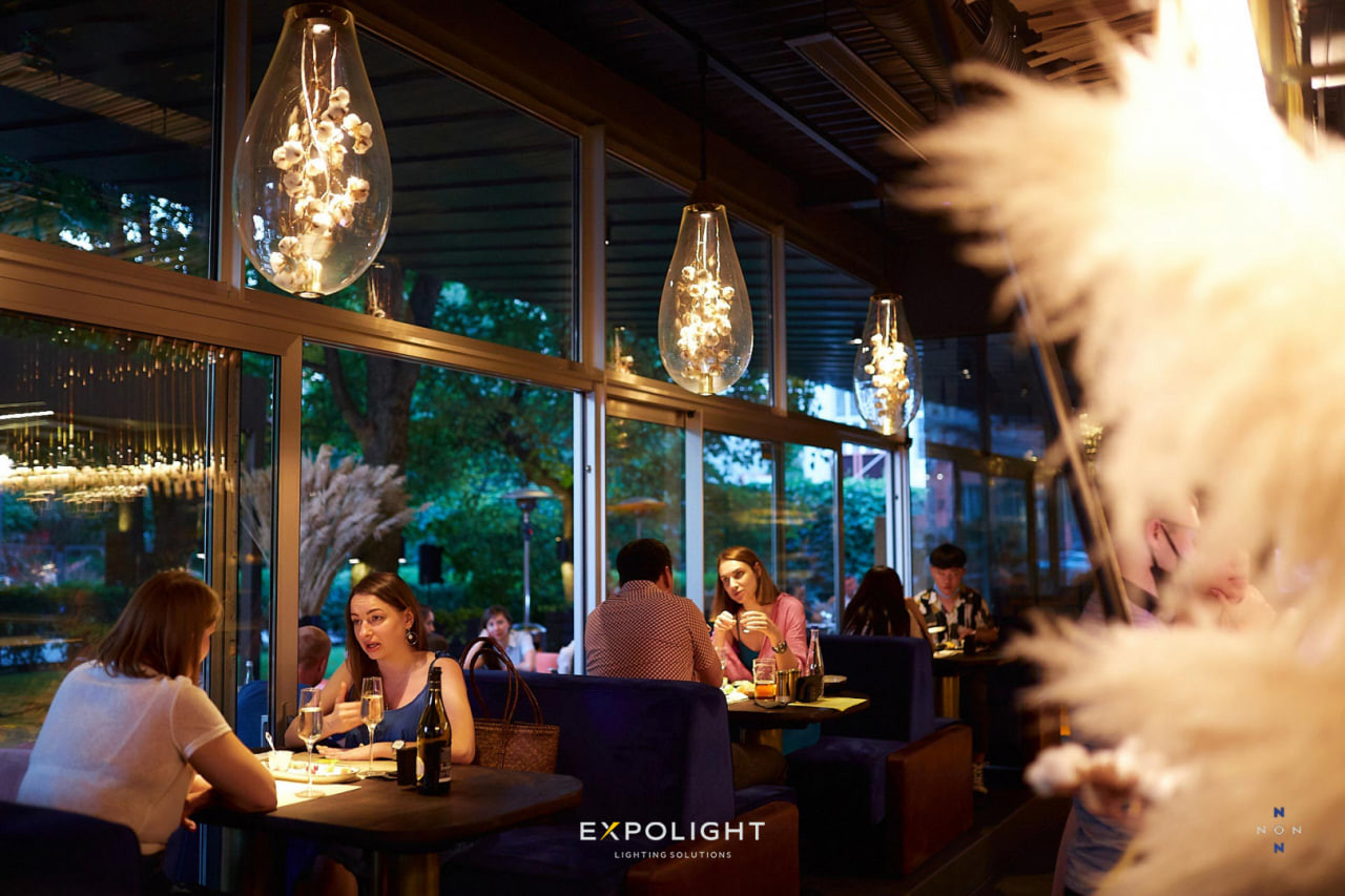 У колаборації з командою Володимира Непійводи, Дмитра Бонеска, YOD design lab створили в харківському ресторані NON настільні та підвісні світильники, одягнувши бавовну в скляні колби й інтегрувавши в них світло.