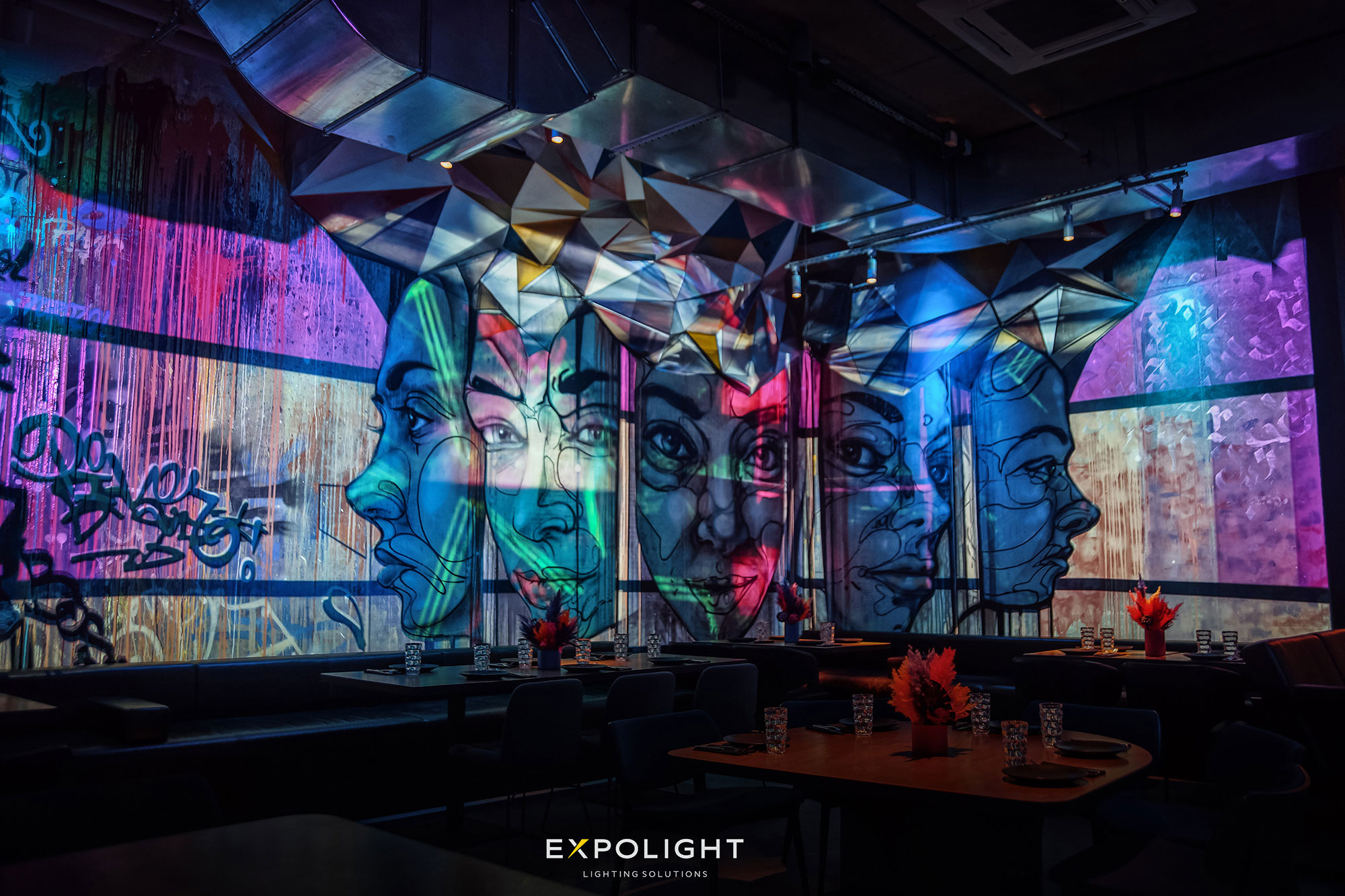 У залах ресторану багато малюнків у стилі арт-вандалізму, а найбільший із них оживає завдяки 3D-mapping. Це графіті намальовано на двох перпендикулярних стінах і 3D-mapping розроблений так, що використовуються площини обох стін. У систему управління закладено 33 варіанти контенту для проектування цього графіті.