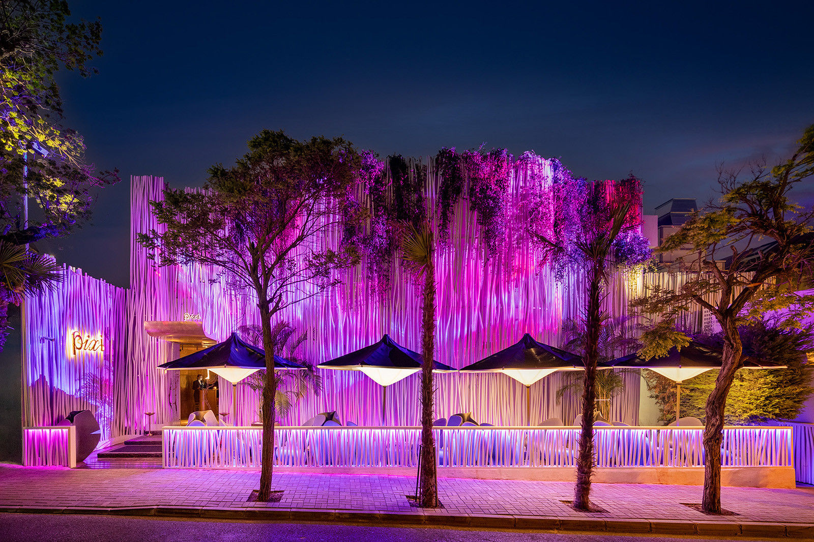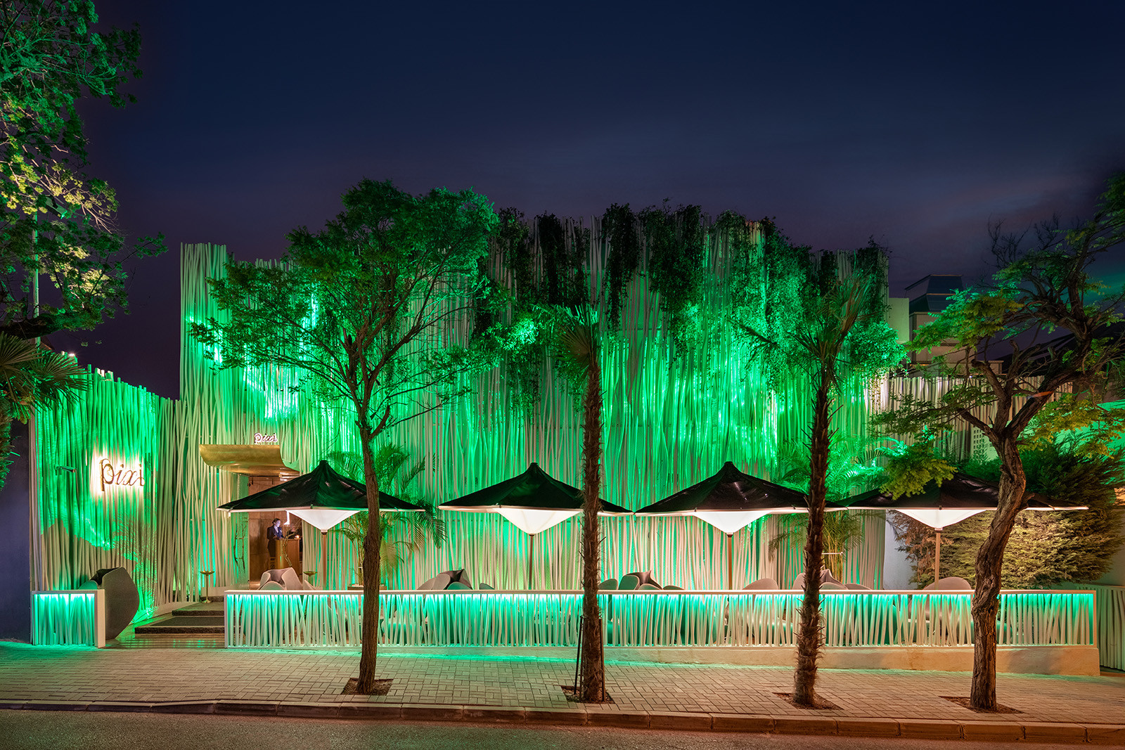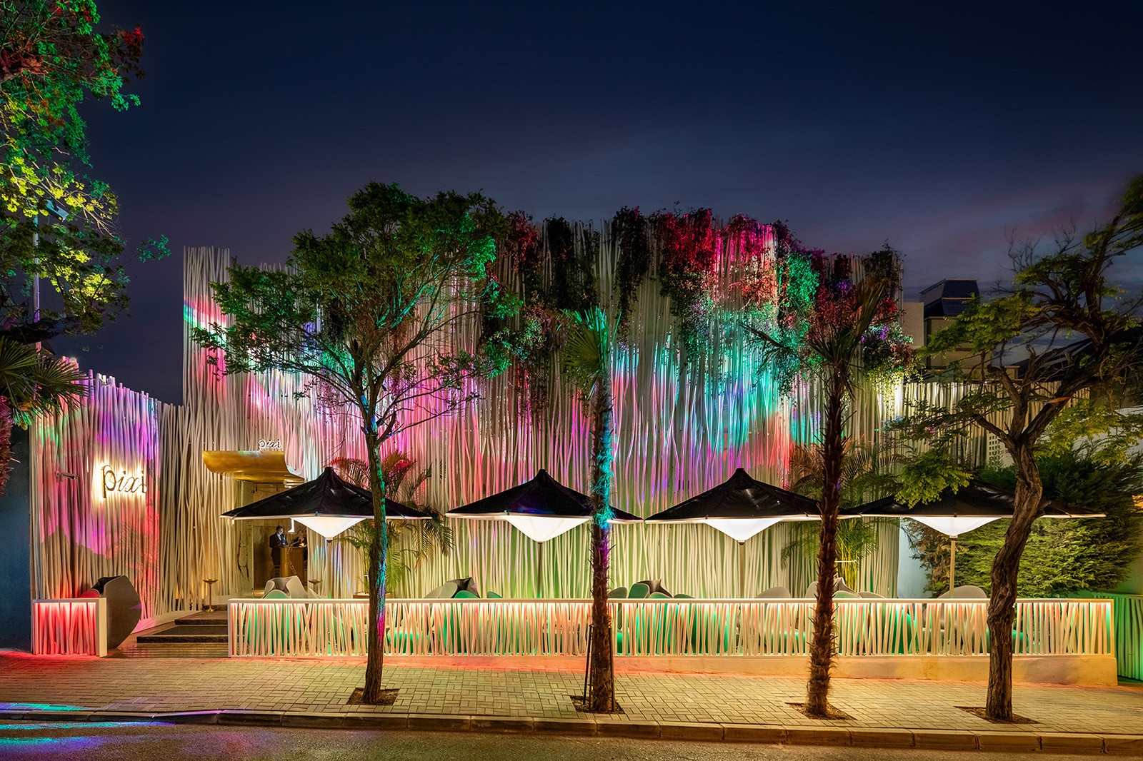 Головна особливість Pixi – це його здатність повністю трансформуватися протягом доби завдяки біодинамічним світловим сценаріям. Вдень ресторан випромінює спокій і світло, створюючи ідеальну атмосферу для бізнес-ланчів і ділових зустрічей. Ввечері ж Pixi перетворюється на затишний ресторан з приглушеним світлом та медіа арт інсталяціями на природну тематику. Пізніше ввечері Pixi стає клубом з особливою атмосферою.