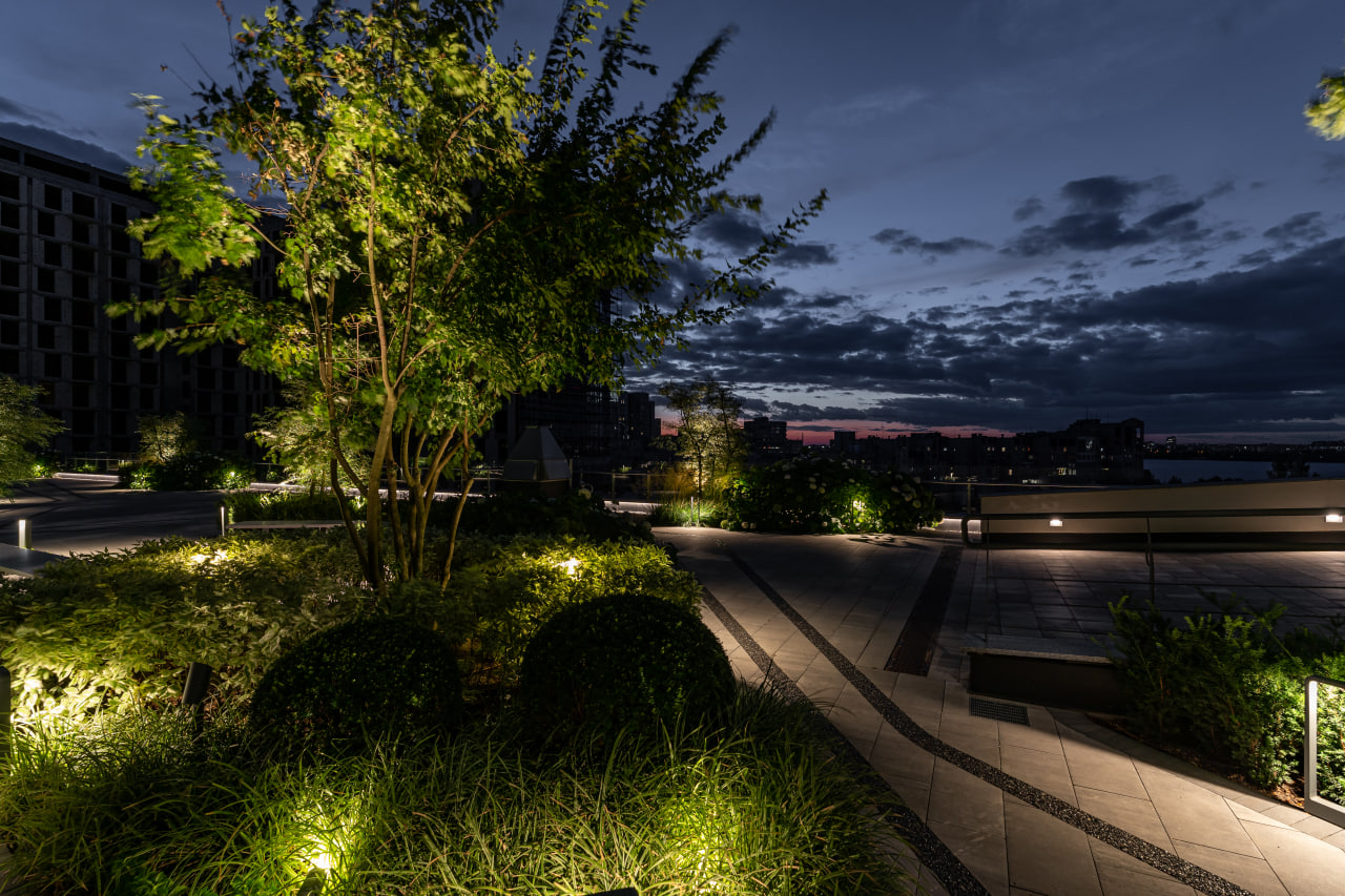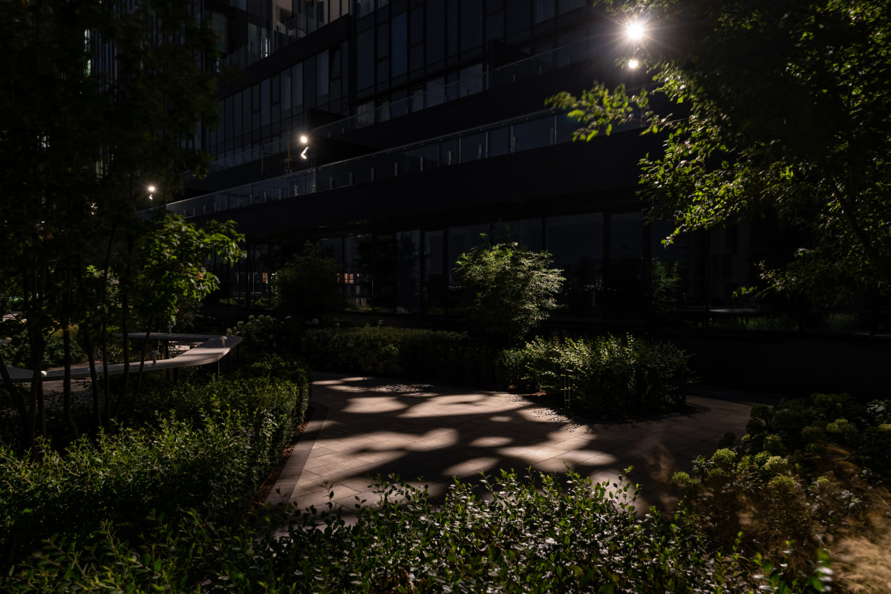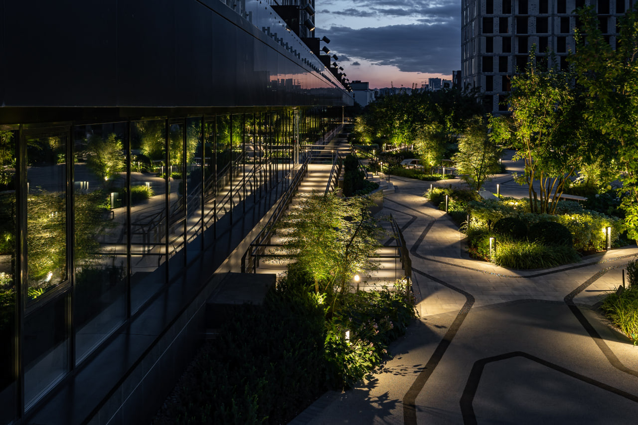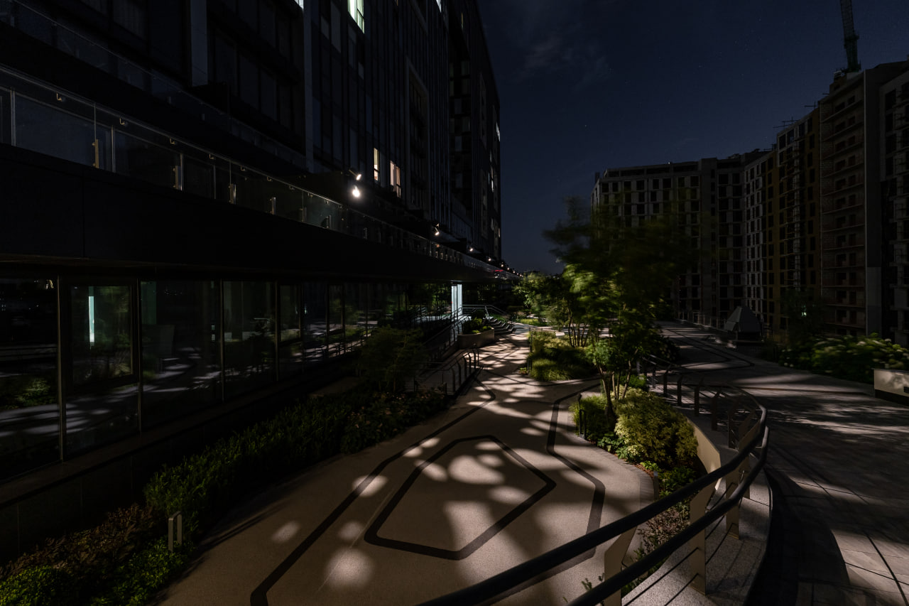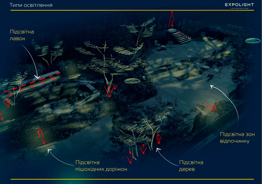 У роботі над освітленням благоустрію нашею задачею було світловими інструментами підкреслити і підсилити наближеність комплексу до природи, створити затишний відокремлений простір для відпочинку та відновлення.