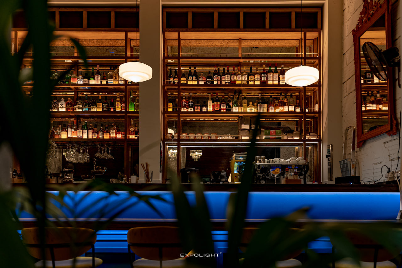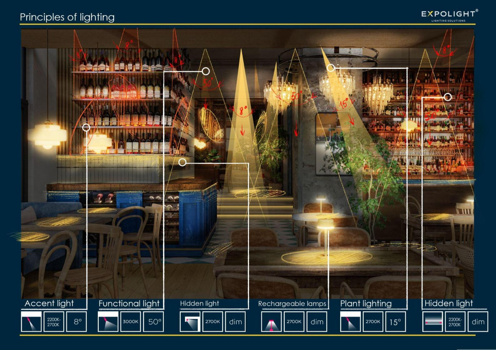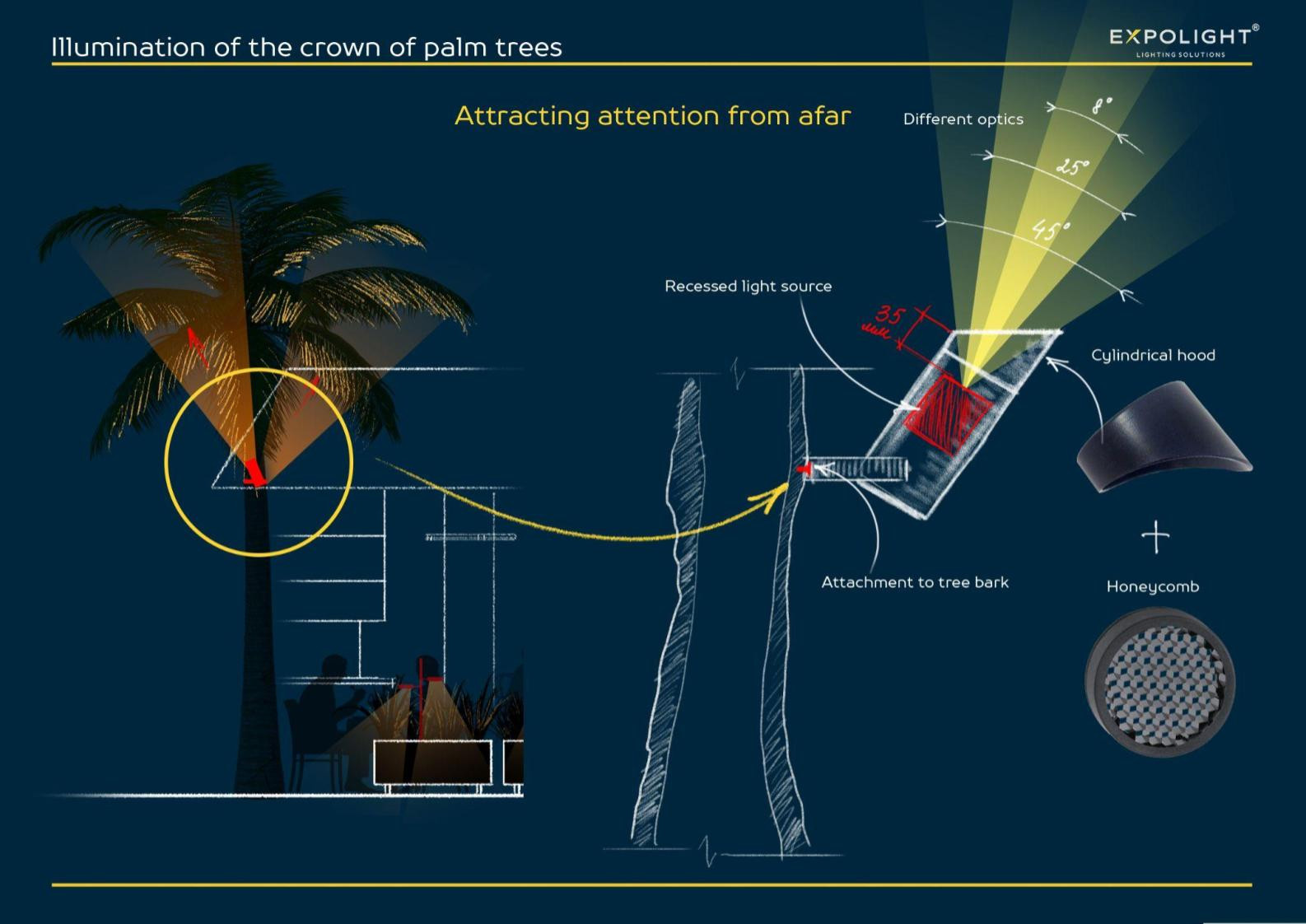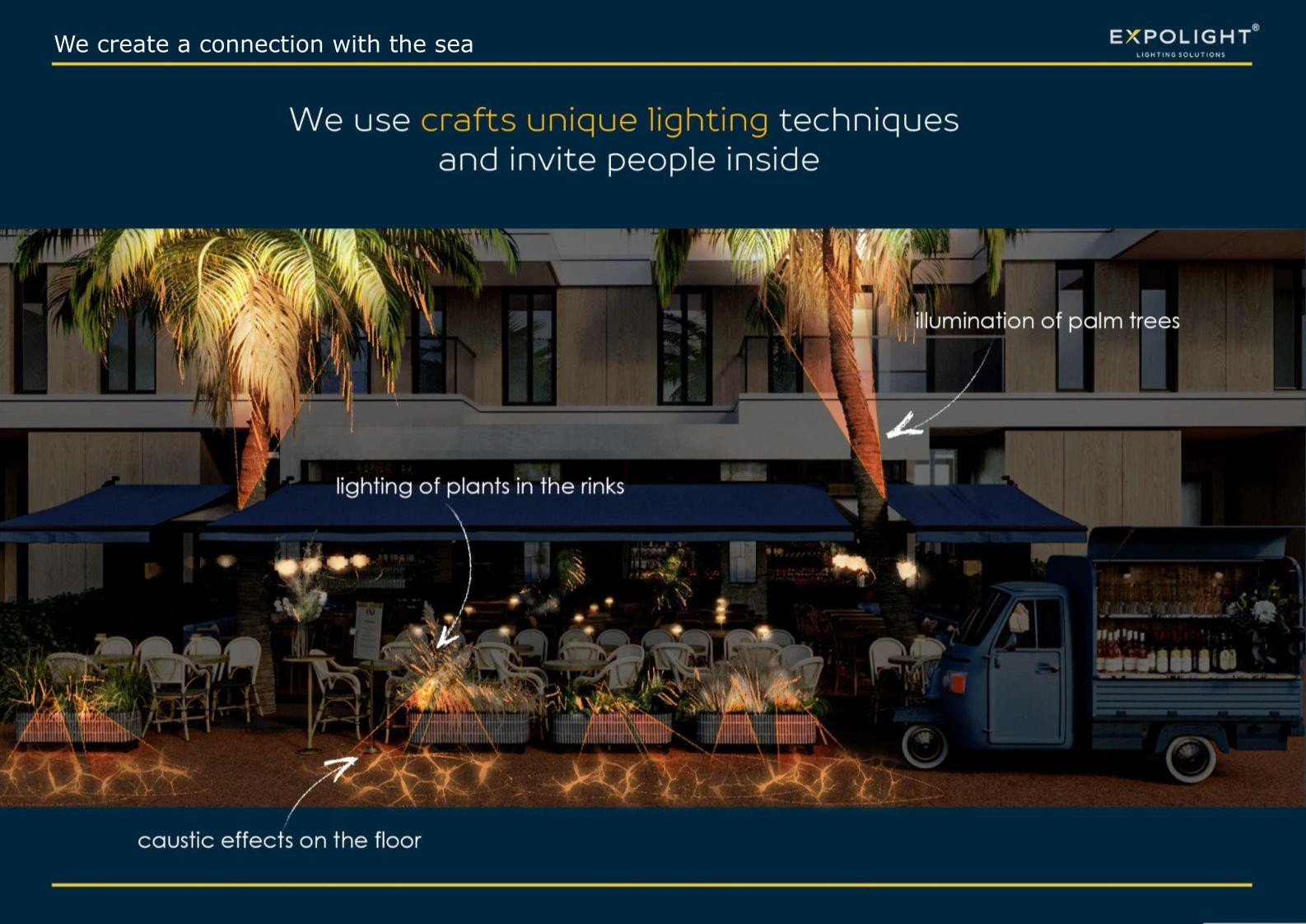 Тут налаштоване світло з усіма сценаріями освітлення – денним, вечірнім, пізньо-вечірнім. Всі елементи освітлення пов'язані в одне ціле за допомогою нашого хмарного сервера Expolight Cloud Control System — таким чином ми можемо керувати освітленням на об’єкті із різних точок світу хоч з ноутбука, хоч зі смартфона.