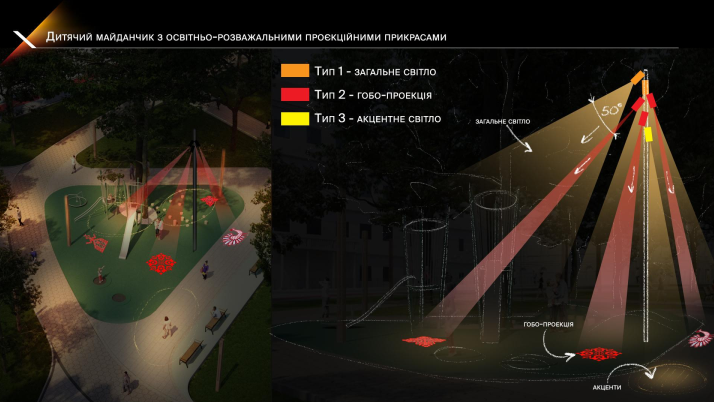 У дитячій зоні відвідувачів зустрінуть яскраві гобо-проєкції, розроблені у співпраці з музеєм. Кожен проєкт створювався вручну на основі автентичних прикладів мистецтва, характерного для української культури.