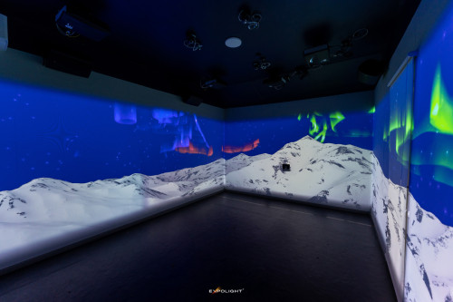 Голографічні проєкції, виконані за допомогою вентиляторних екранів і дзеркал, є одним з основних акцентів цього проєкту. Вентиляторні екрани забезпечують створення тривимірних зображень, які, завдяки відображенню на дзеркалах, створюють ілюзію невидимого простору та безкінечності.
