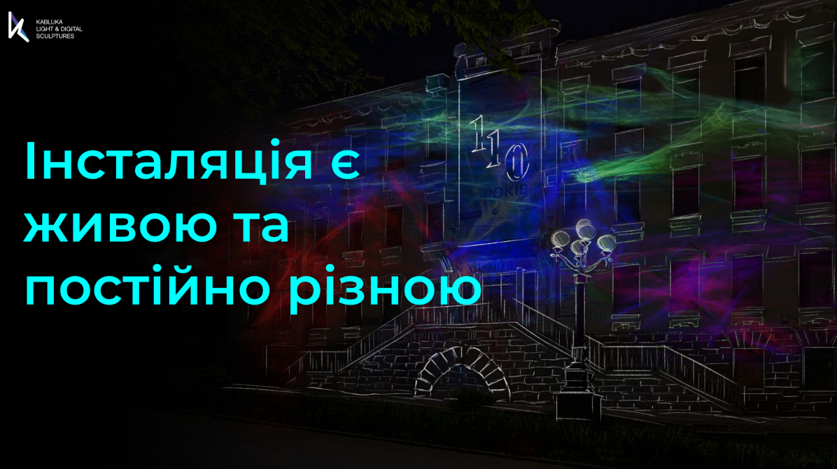 Інсталяція виражає світло душі українського народу, його творчість, неповторність. Вона є живою та постійно різною – світлові ефекти, розливаючись по фасаду, нагадують нематеріальні фарби, що “шукають форму” та розливаються по полотну фасаду. А також є алюзією до всього мистецтва, яке зберігають в собі більше ніж сторічні стіни.