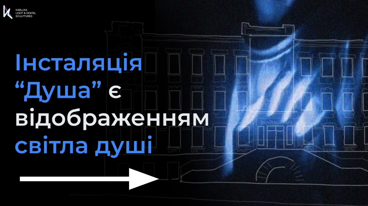 “Душа” — арт-інсталяція, яка мала почесну місію “пролити світло” та привернути увагу до 110-річчя художнього музею Дніпра, а також в якості подарунка від команди Kabluka Light&Digital Sculptures by Expolight прикрасила фасад музею.