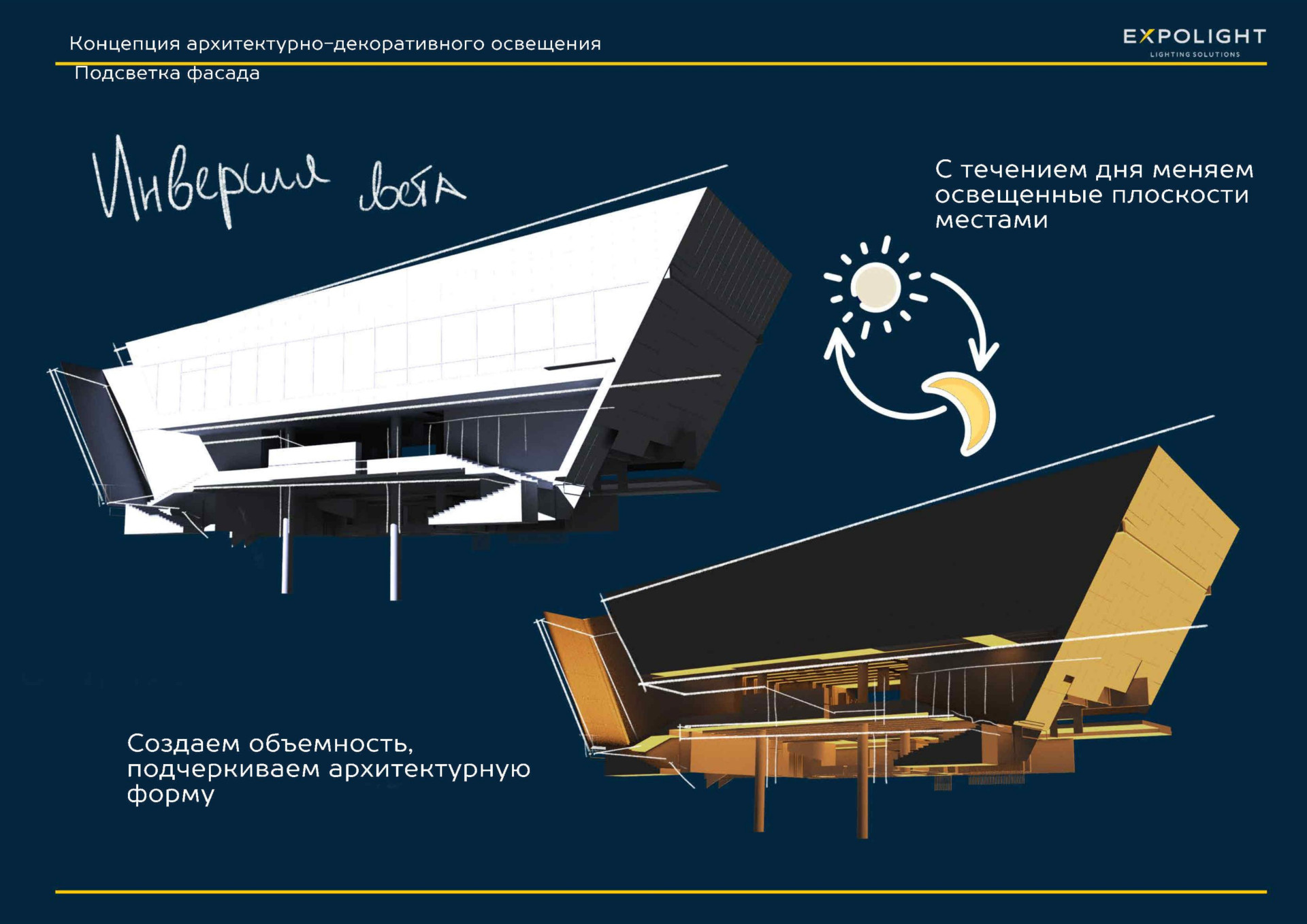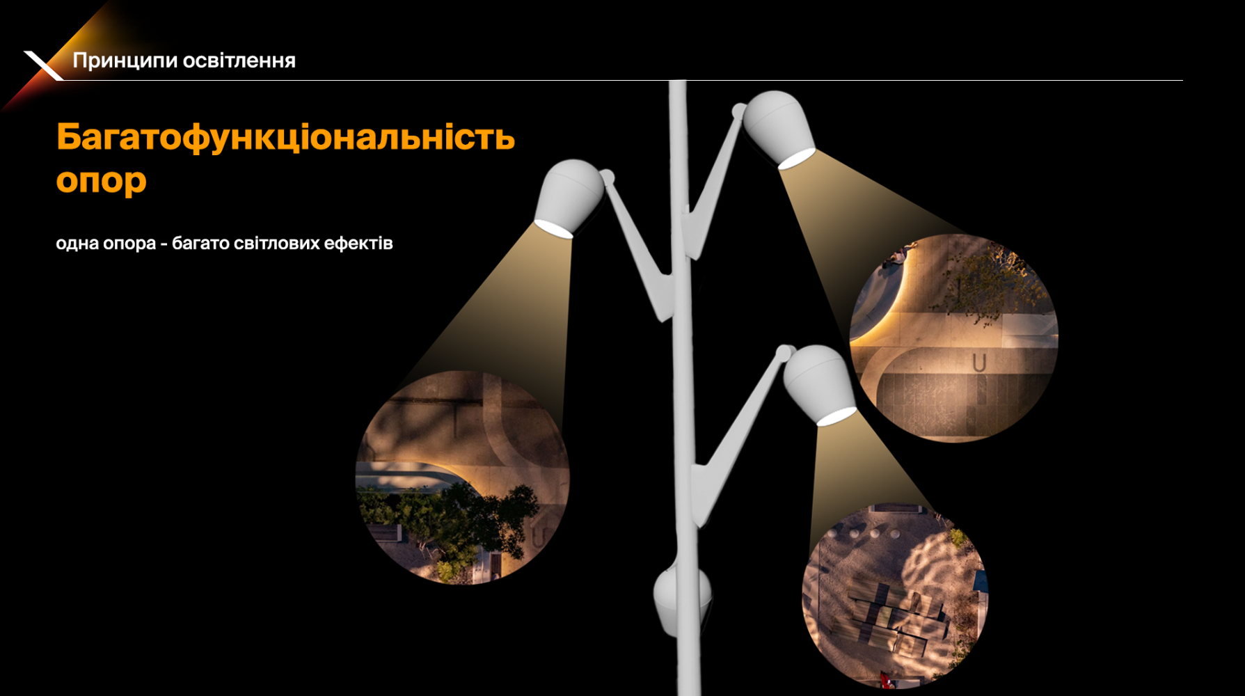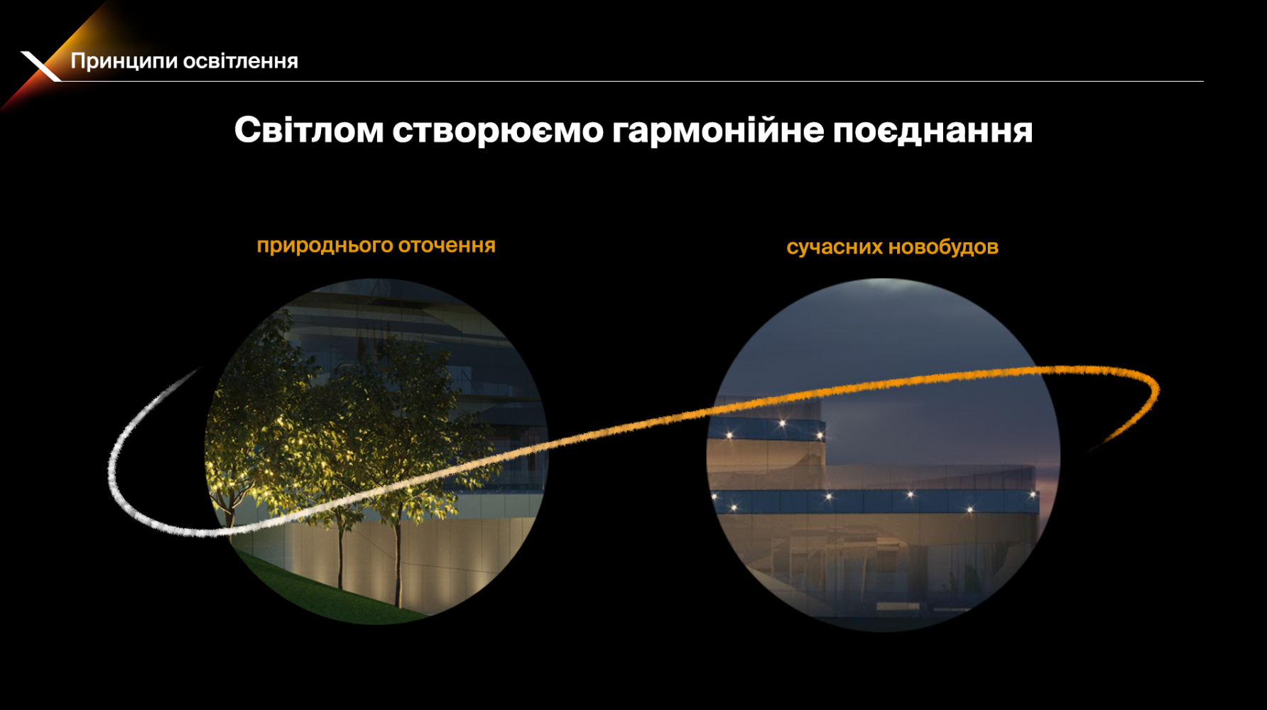 Ми поєднували декілька різних світильників власного виробництва Expolight, кожен з яких ми нюансно налаштували. Ми також налаштували інтер'єрне та фасадне освітлення.