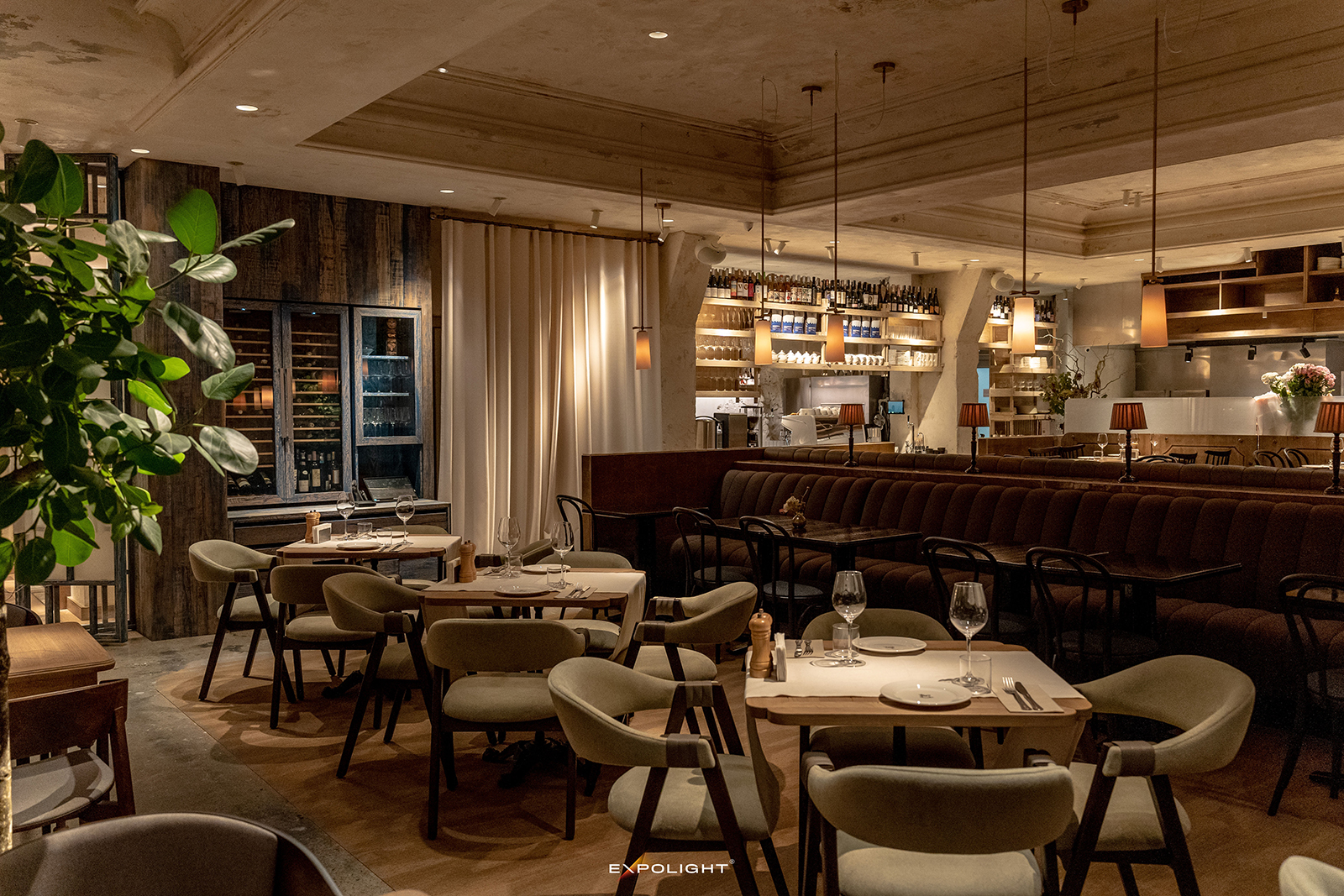 У ресторані «Сузір’я» освітлення використано як інструмент формування цілісного середовища, де всі зони та деталі працюють на єдину концепцію сучасного прочитання української гостинності.